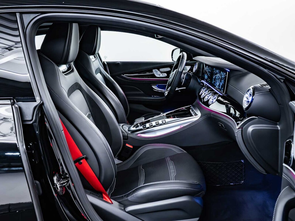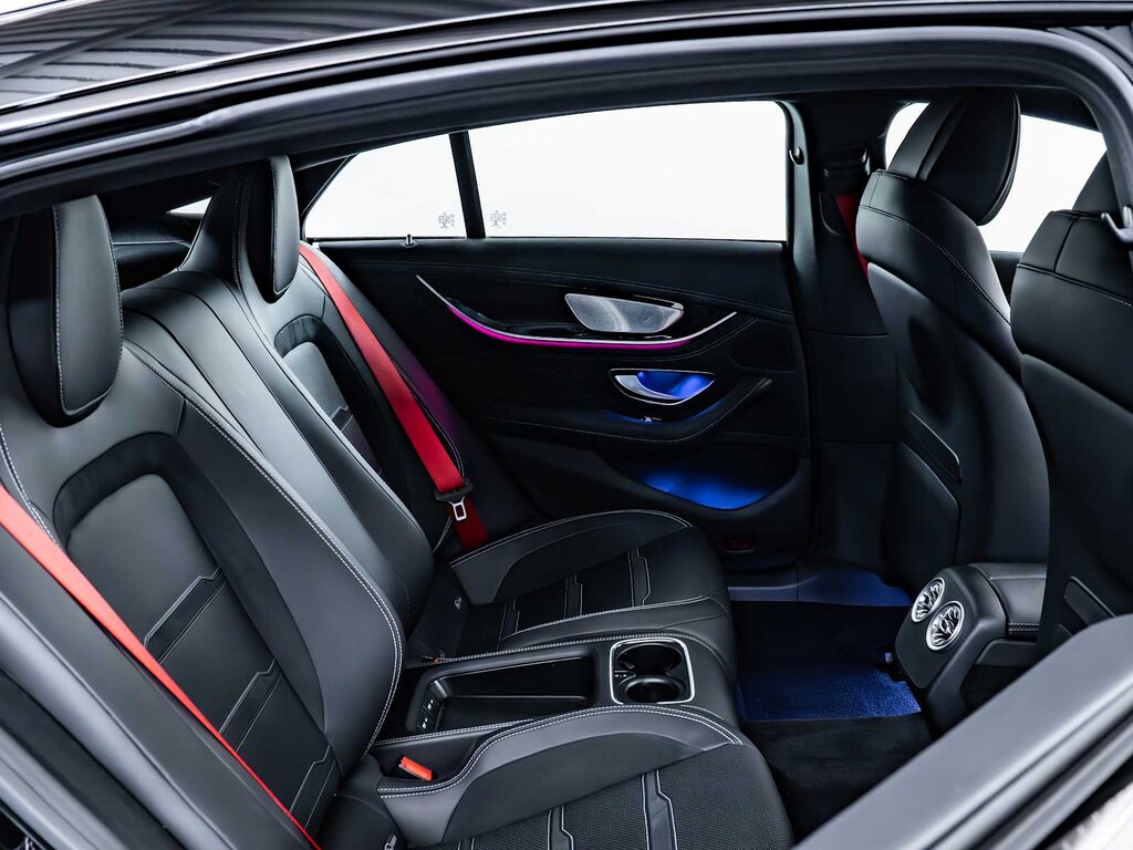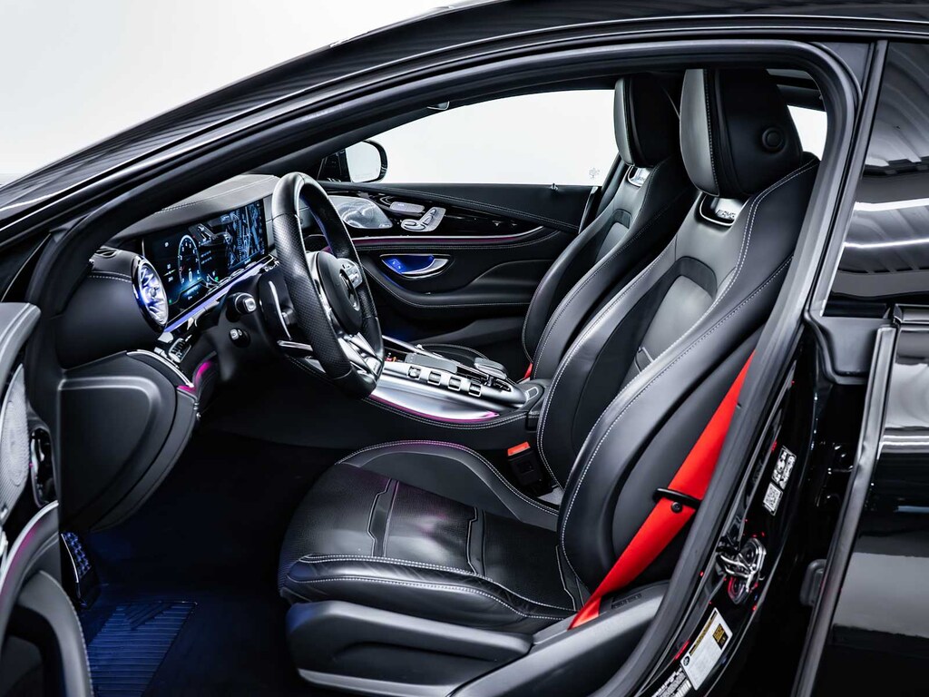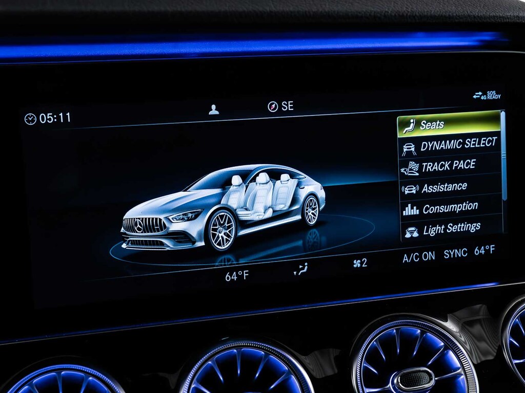 Cross-Traffic Alert, Child Safety Locks, Electronic Stability Control, Brake Assist, 4-Wheel ABS, 4-Wheel Disc Brakes, Tire Pressure Monitoring System Mercedes-Benz AMG® GT 53 with Obsidian Black Metallic exterior and Black interior features a Straight 6 Cylinder Engine with 429 HP at 6100 RPM*.