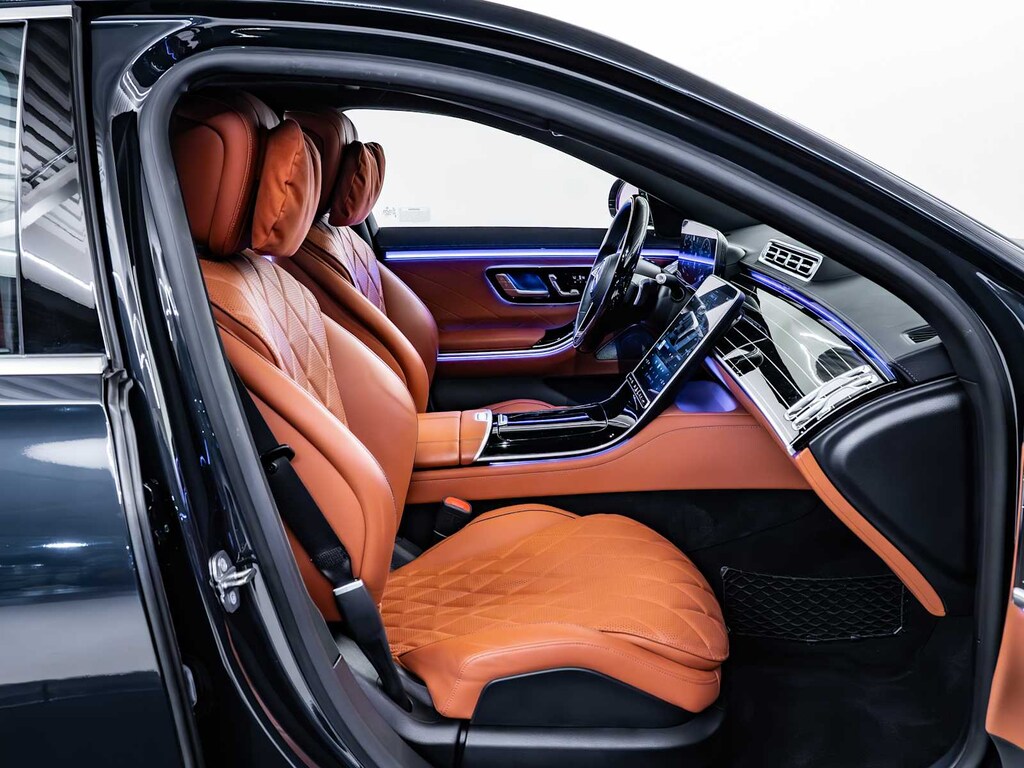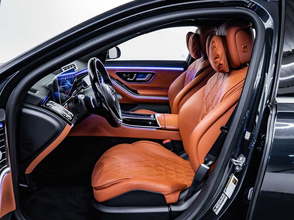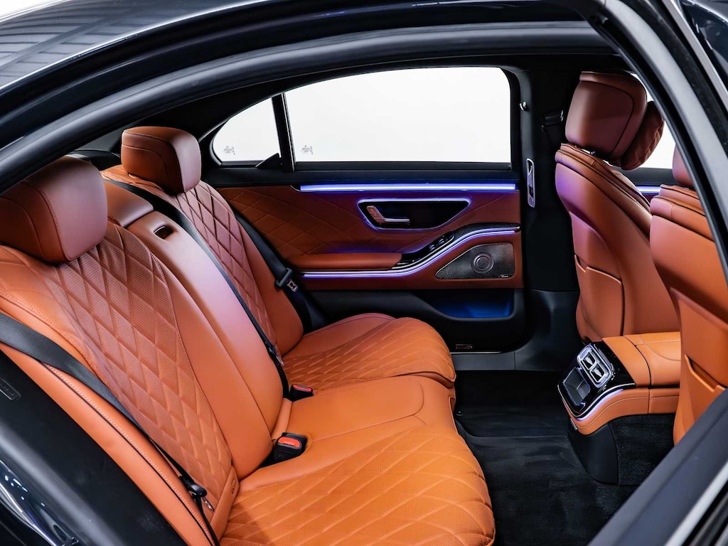 Cross-Traffic Alert, Lane Keeping Assist, Blind Spot Monitor, Electronic Stability Control, Brake Assist, 4-Wheel ABS, 4-Wheel Disc Brakes, Tire Pressure Monitoring System Mercedes-Benz S 580 with Anthracite Blue exterior and Sienna Brown/Black interior features a 8 Cylinder Engine with 496 HP at 5500 RPM*.