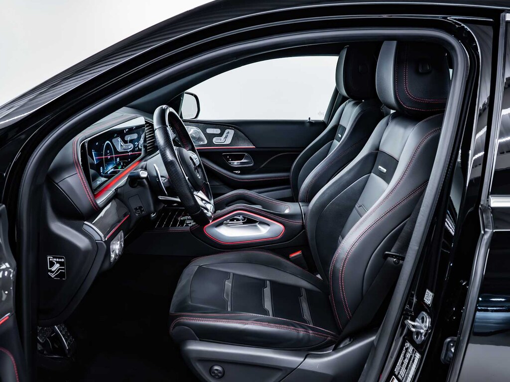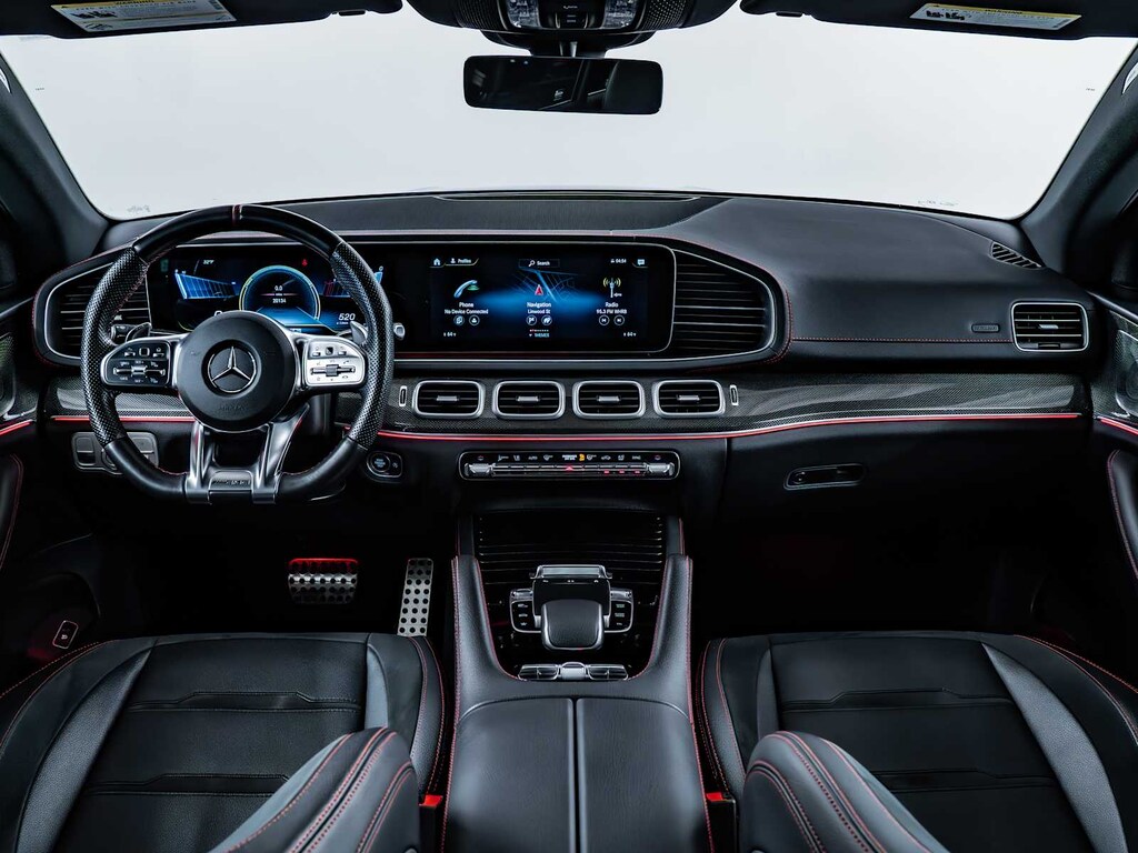 Blind Spot Monitor, Child Safety Locks, Electronic Stability Control, Brake Assist, 4-Wheel ABS, 4-Wheel Disc Brakes, Tire Pressure Monitoring System Mercedes-Benz AMG® GLE 53 with Black exterior and Black w/Red Stitching interior features a Straight 6 Cylinder Engine with 429 HP at 6100 RPM*.