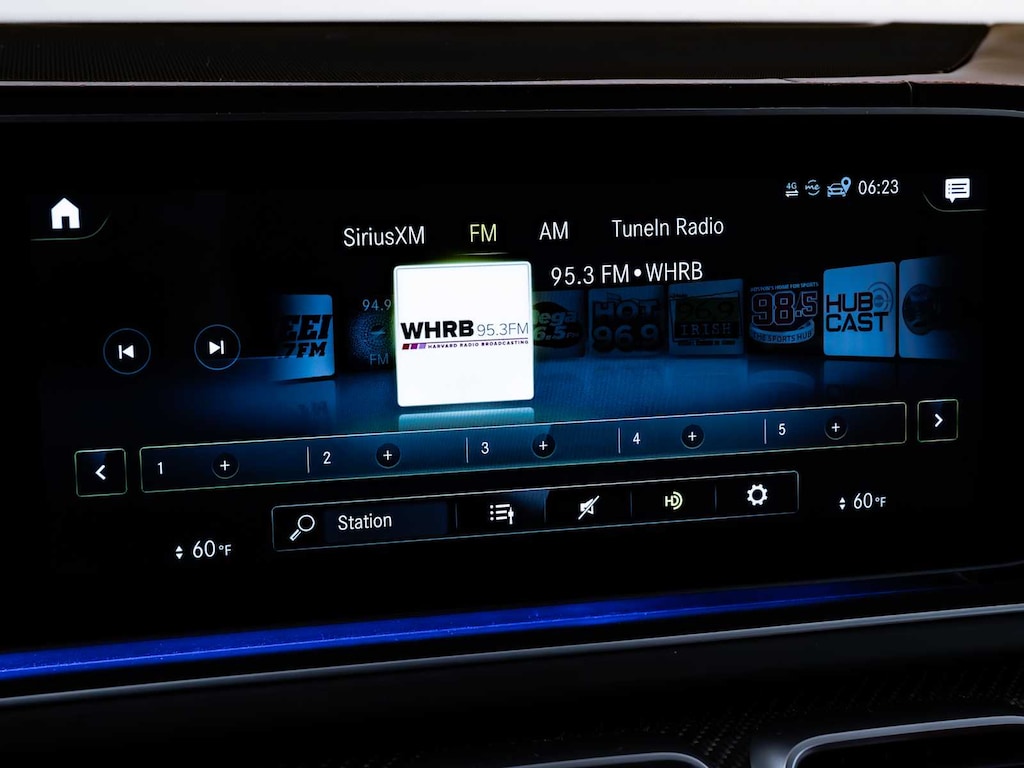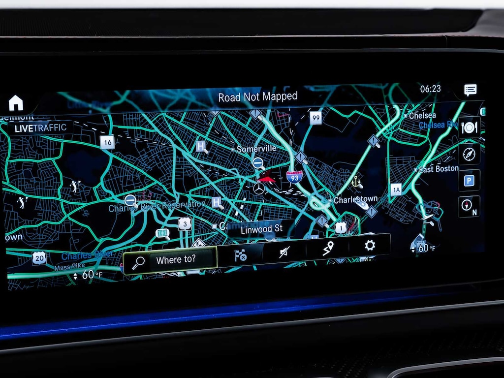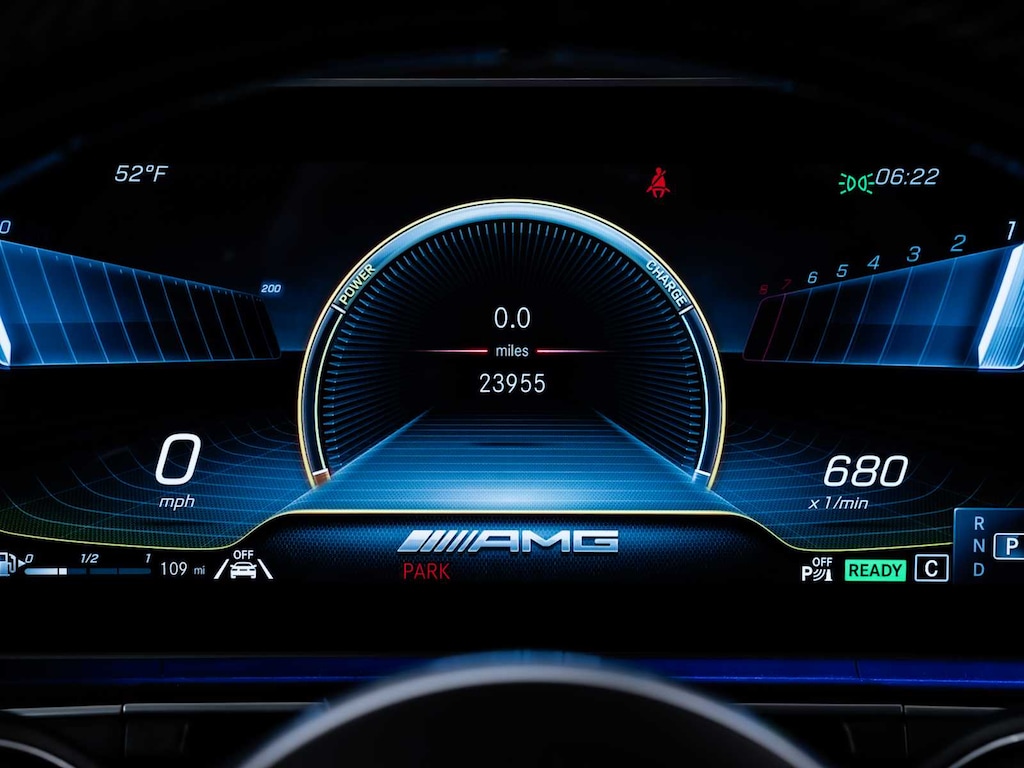 WHEELS: 22 AMG® CROSS-SPOKE FORGED, MATTE BLACK Tires: 22, Summer High Performance Tires, DRIVER ASSISTANCE PACKAGE PLUS Route-Based Speed Adaptation, Active Emergency Stop Assist, Active Brake Assist w/Cross-Traffic Function, Active Stop & Go Assist, Active Lane Keeping Assist, Active Blind Spot Assist, PRESAFE® PLUS Rear End Collision Protection, Active Distance Assist DISTRONIC®, Active Steering Assist, Evasive Steering Assist, Active Speed Limit Assist, Traffic Sign Assist, Active Lane Change Assist, MULTICONTOUR FRONT SEATS W/MASSAGE, HEAD-UP DISPLAY (HUD), 4-ZONE CLIMATE CONTROL, BRUSHED ALUMINUM ILLUMINATED RUNNING BOARDS, TRAILER HITCH, AMG® PERF STEERING WHEEL IN CARBON FIBER/MICROFIBER silver-colored aluminum shift paddles and a 12-oclock marking.