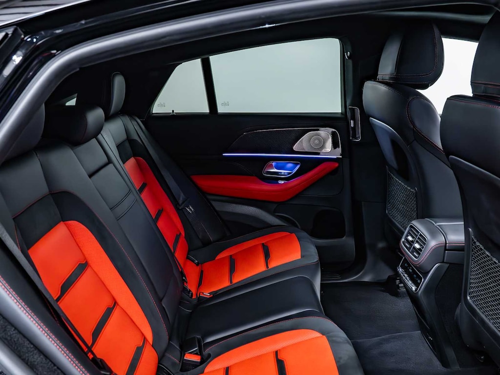 Cross-Traffic Alert, Blind Spot Monitor, Lane Keeping Assist, Child Safety Locks, Electronic Stability Control, Brake Assist, 4-Wheel ABS, Tire Pressure Monitoring System, 4-Wheel Disc Brakes Mercedes-Benz AMG® GLE 63 S with Obsidian Black Metallic exterior and Classic Red/Black interior features a 8 Cylinder Engine with 603 HP at 5750 RPM*.
