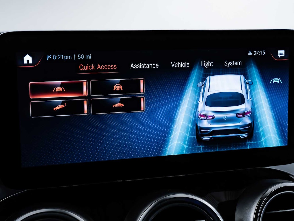 Lane Keeping Assist, Cross-Traffic Alert, Blind Spot Monitor, Electronic Stability Control, Brake Assist, 4-Wheel ABS, 4-Wheel Disc Brakes, Tire Pressure Monitoring System Mercedes-Benz GLC 300 with Obsidian Black Metallic exterior and AMG® Black interior features a 4 Cylinder Engine with 255 HP at 5800 RPM*.