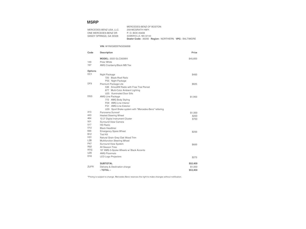 AMG® LINE flat-bottom multifunction sport steering wheel, AMG® Line Floor Mats, AMG® Line Body Styling, Perforated Brake Discs, Mercedes-Benz lettered calipers, AMG® Line Interior, AMG® Line Exterior, PANORAMA SUNROOF, PREMIUM PACKAGE LITE 64-Color Ambient Lighting, Illuminated Door Sills, SiriusXM Satellite Radio, SURROUND VIEW SYSTEM, HEATED STEERING WHEEL, EMERGENCY SPARE WHEEL.