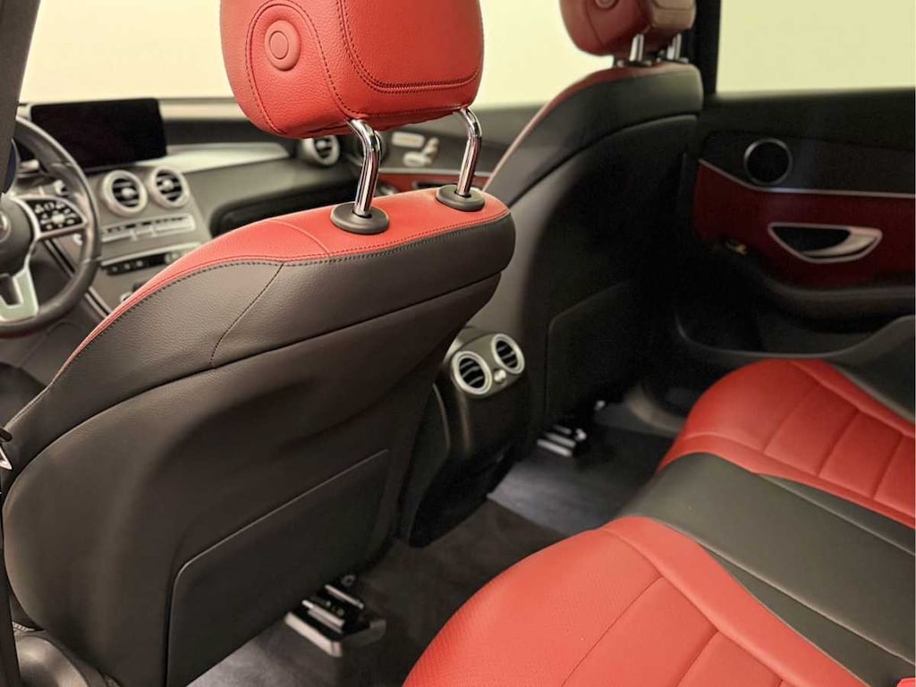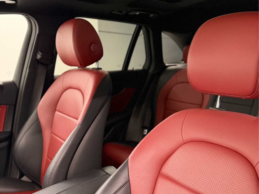 Child Safety Locks, Electronic Stability Control, Brake Assist, 4-Wheel ABS, 4-Wheel Disc Brakes, Tire Pressure Monitoring System Mercedes-Benz GLC 300 with Polar White exterior and AMG® Cranberry Red/Black interior features a 4 Cylinder Engine with 255 HP at 5800 RPM*.
