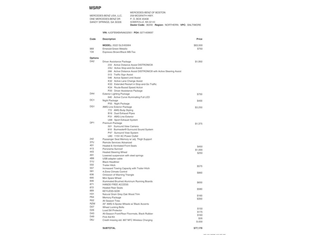 DRIVER ASSISTANCE PACKAGE PLUS Route-Based Speed Adaptation, Active Emergency Stop Assist, Active Stop-and-Go Assist, PRESAFE® PLUS Rear Collision Protection, Active Distance Assist DISTRONIC®, Active Steering Assist, Evasive Steering Assist, Active Brake Assist w/Cross-Traffic Function, Active Blind Spot Assist, Active Speed Limit Assist, Traffic Sign Assist, Active Lane Keeping Assist, Active Lane Change Assist, PREMIUM PACKAGE Parking Assist Code, Surround View System, 115V Power Outlet, Burmester® Surround Sound System, PANORAMA POWER TILT/SLIDING SUNROOF, 4-ZONE CLIMATE CONTROL, EXTERIOR LIGHTING PACKAGE LED Intelligent Light System, ILLUMINATED RUNNING BOARDS side sill panels painted in black, HEATED REAR SEATS, TRAILER HITCH Increased Towing Capacity, VENTILATED FRONT SEATS, PASSENGER SEAT MEMORY, HEATED STEERING WHEEL.