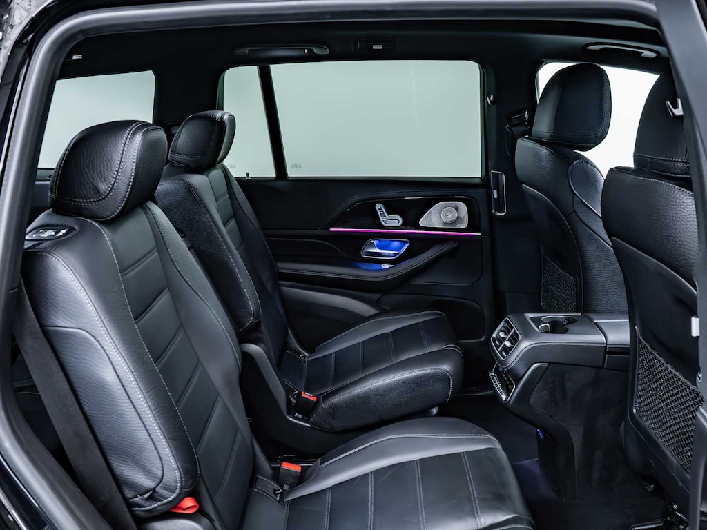 Third Row Seat, Navigation, Full-Time 4MATIC® All-Wheel, Power Liftgate, Heated Driver Seat, Cooled Driver Seat, Back-Up Camera, Turbocharged, Premium Sound System, Satellite Radio, iPod/MP3 Input, Onboard Communications System, Aluminum Wheels, Keyless Start, Hands-Free Liftgate. Rear Spoiler, MP3 Player, Remote Trunk Release, Privacy Glass, Keyless Entry.