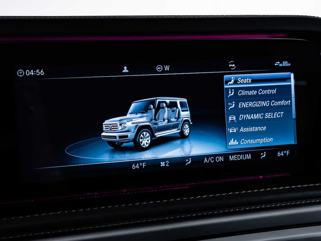 EXCLUSIVE INTERIOR PACKAGE PLUS: black microfiber headliner, upper door panels and inside of tailgate in upholstery color, seat upholstery w/diamond design layout, air vents in silver chrome, armrests in the doors and center console plus the complete door paneling in Nappa leather and upper door panels, kneepads plus inside of tailgate in Nappa leather w/diamond design, Different components in conjunction w/Nappa leather in macchiato beige/espresso brown (805): upper part of dashboard in Nappa leather in espresso brown, lower part in macchiato beige, steering wheel color in espresso brown, velour floor mats in espresso brown w/edging in macchiato beige and macchiato beige microfiber headliner, Seat Comfort Package, rapid heating front seats, ventilated front seats (adds perforation to the, AMG® CARBON FIBER TRIM, AMG® LINE: AMG® body styling comprising inserts in the front and rear apron in high-gloss chrome plus flared wheel arches, Contrast stitching in red 501 upholsteries only, Red Seat Belts, Included w/501 upholsteries only, Front Brake Calipers w/Mercedes-Benz Lettering, Exterior Protective Strips w/Trim Insert, brushed aluminum look, AMG® Floor Mats, Sport Exhaust System, SUSPENSION W/ADAPTIVE DAMPING ADJUSTMENT, LEATHER GRAB HANDLES.