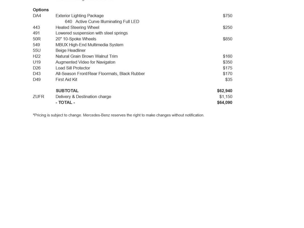 WHEELS: 20 TWIN 5-SPOKE Tires: 275/50R20, EXTERIOR LIGHTING PACKAGE LED Intelligent Light System, MBUX AUGMENTED VIDEO FOR NAVIGATION, HEATED STEERING WHEEL.