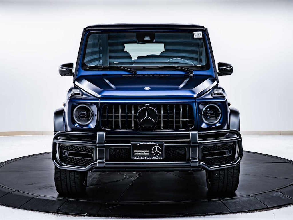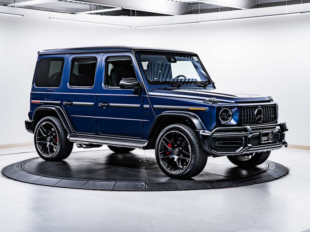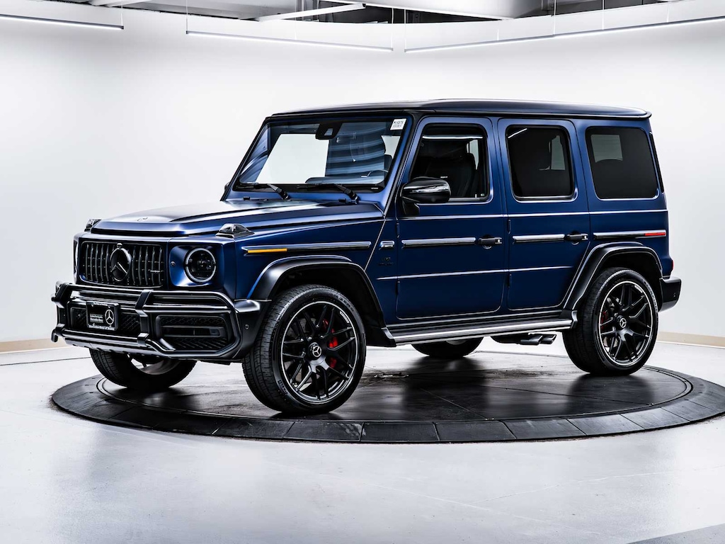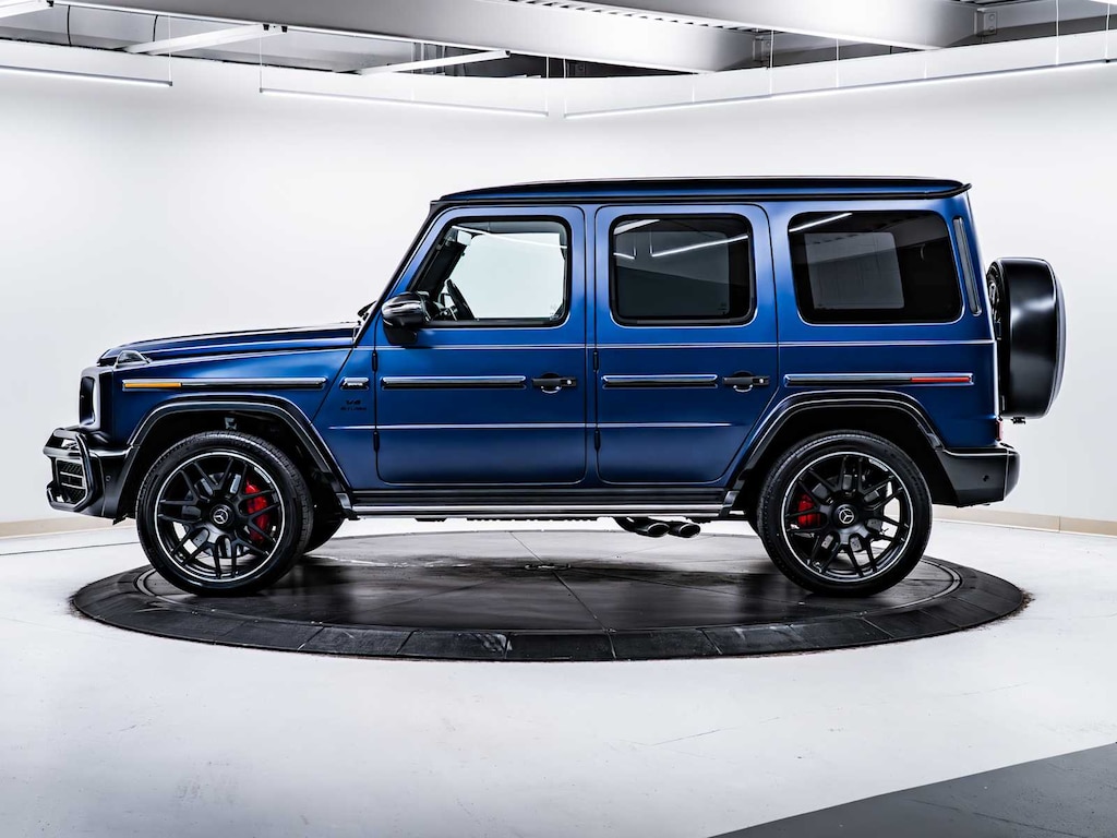 Cross-Traffic Alert, Blind Spot Monitor, Lane Keeping Assist, Electronic Stability Control, Brake Assist, 4-Wheel ABS, Tire Pressure Monitoring System, 4-Wheel Disc Brakes Mercedes-Benz AMG® G 63 with MANUFAKTUR brilliant blue magno exterior and Black interior features a 8 Cylinder Engine with 577 HP at 6000 RPM*.