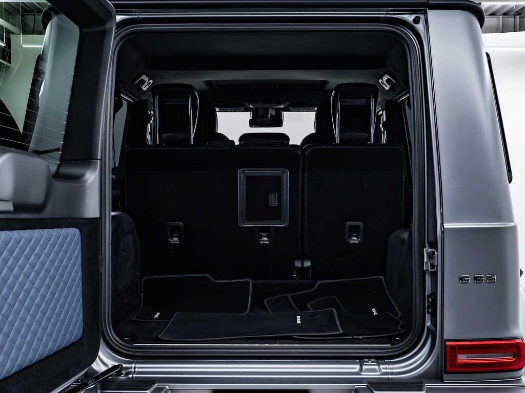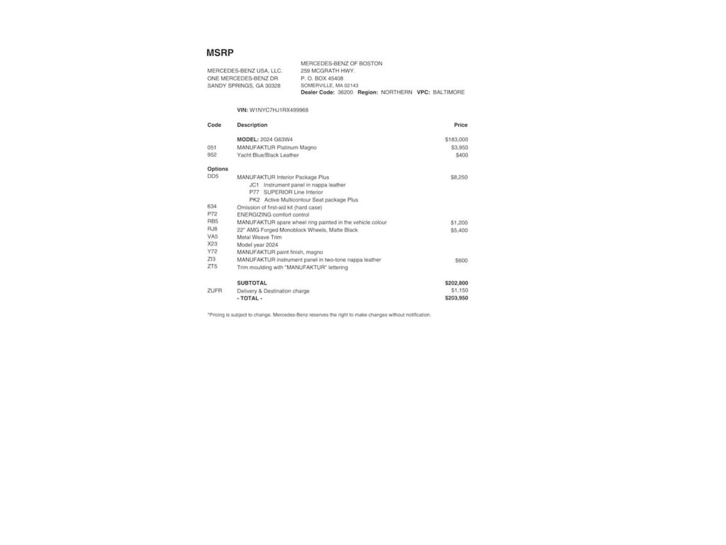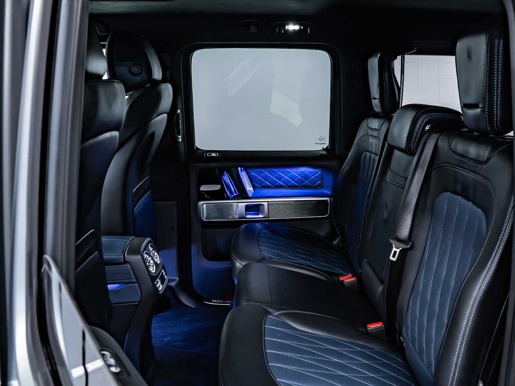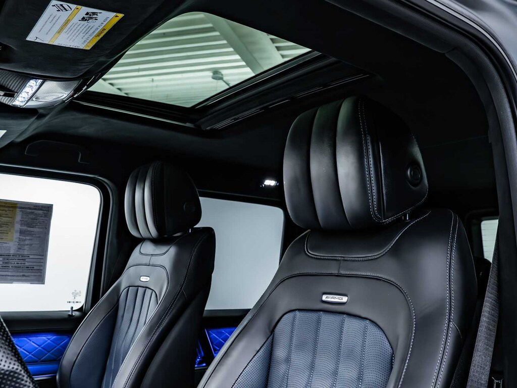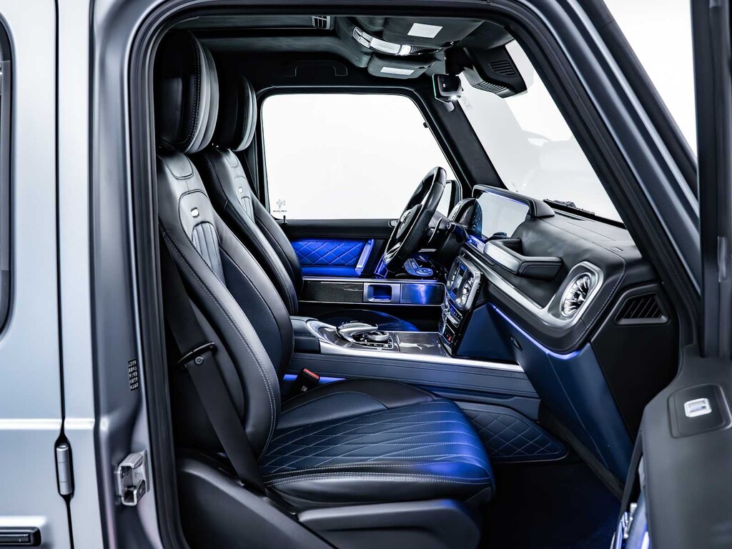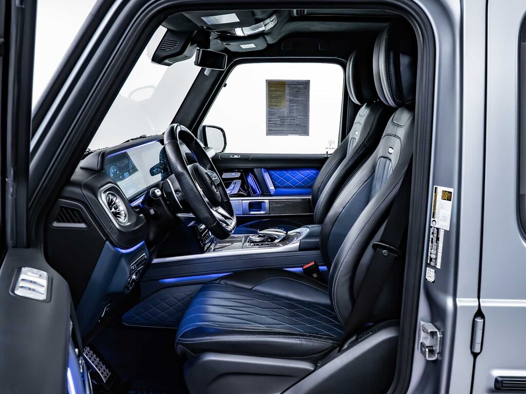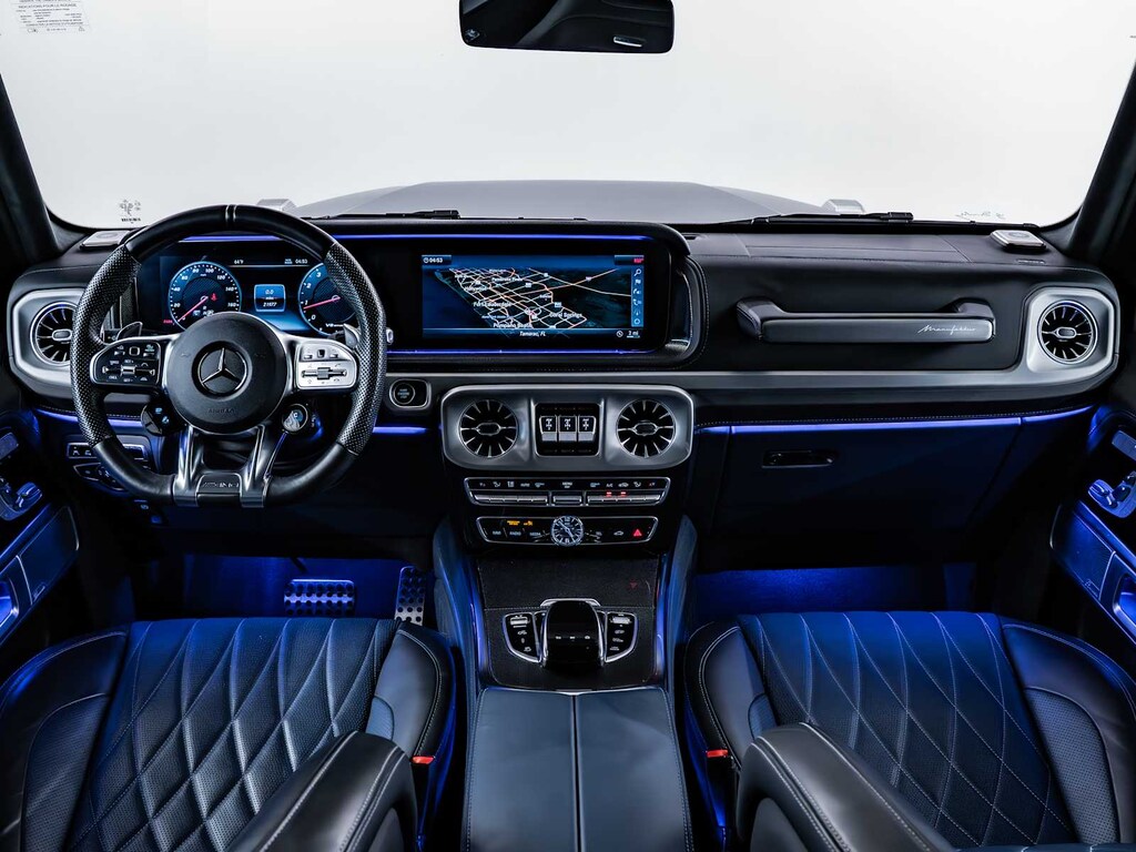 MANUFAKTUR INTERIOR PACKAGE PLUS: MANUFAKTUR Interior Package Plus, upper door panels, kneepads plus inside of tailgate in exclusive Nappa leather w/diamond design, Upper & Lower Dashboard in Nappa Leather, G manufaktur Front Passenger Grab Handle Badge, Armrests in Exclusive Nappa Leather, Seat Comfort Package, Drive-Dynamic Multicontour Front Seats w/Massage, ENERGIZING Comfort Control, Rapid Heating Front Seats, Front Ventilated Seats, WHEELS: 22 AMG® MATTE BLACK FORGED MONOBLOCK Tires: 295/40R22, SPARE WHEEL COVER IN VEHICLE COLOR, TWO-TONE DASHBOARD: the lower part of the dashboard, the center armrest plus the side section of the center console in the same color shade as the seat appointments.