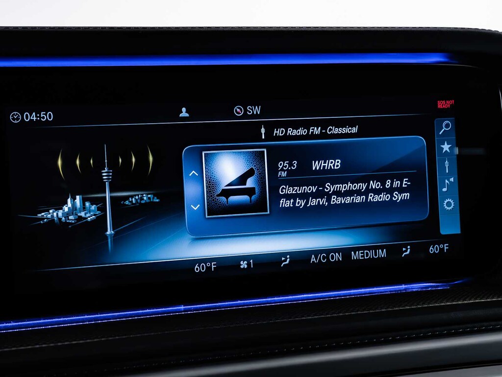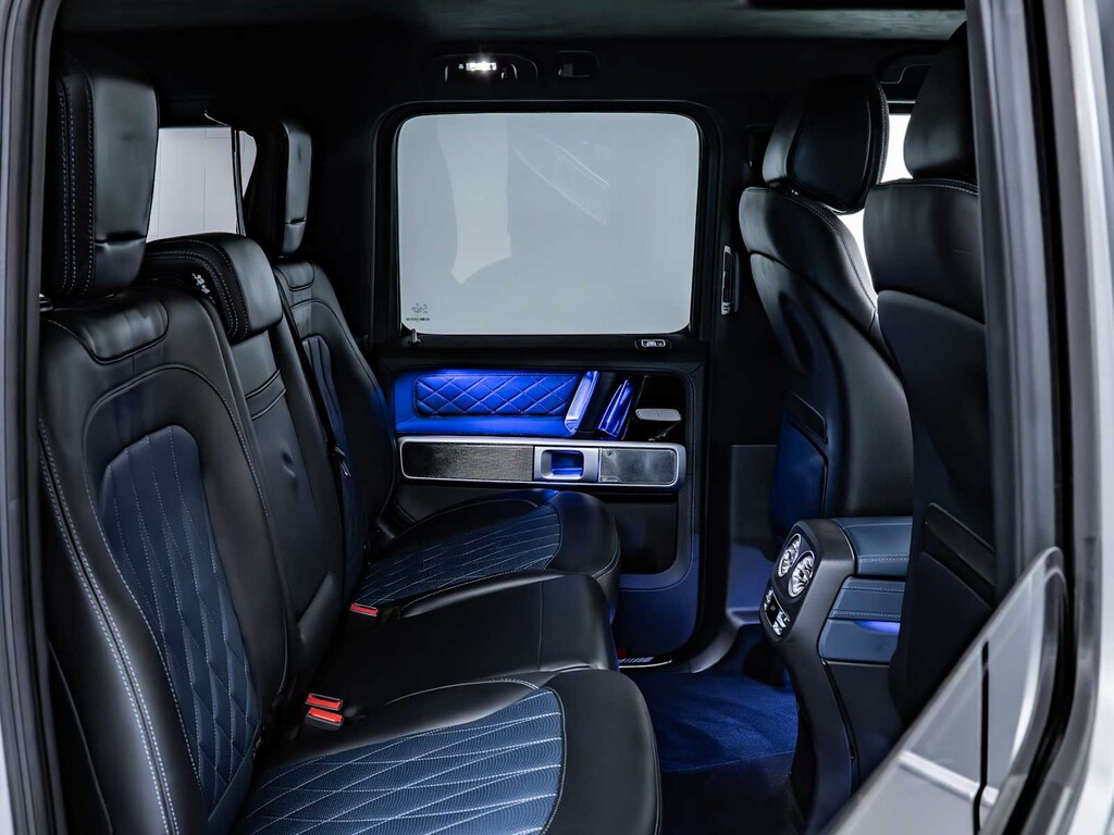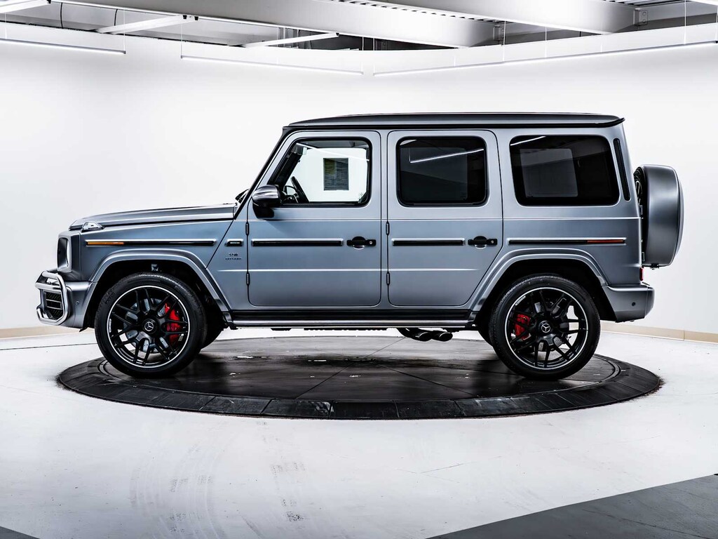 Lane Keeping Assist, Cross-Traffic Alert, Blind Spot Monitor, Electronic Stability Control, Brake Assist, 4-Wheel ABS, Tire Pressure Monitoring System, 4-Wheel Disc Brakes Mercedes-Benz AMG® G 63 with MANUFAKTUR Platinum magno exterior and Yacht Blue/Black interior features a 8 Cylinder Engine with 577 HP at 6000 RPM*.