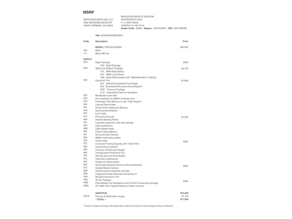 AMG® LINE EXTERIOR: AMG® Line Body Styling, Perforated Brake Discs, EXCLUSIVE TRIM Augmented Video for Navigation, Ventilated Front Seats, Burmester® Surround Sound System w/Dolby Atmos, Music Streaming, Sound Personalization, PANORAMA POWER TILT/SLIDING SUNROOF, ILLUMINATED RUNNING BOARDS, TRAILER HITCH Increased Towing Capacity, WINTER PACKAGE Heated Washer System, Heated Steering Wheel, NIGHT PACKAGE: high-gloss black elements: front wing, grille lamellas, rear diffuser insert, exterior mirrors, beltline and window trim, Black Roof Rails.