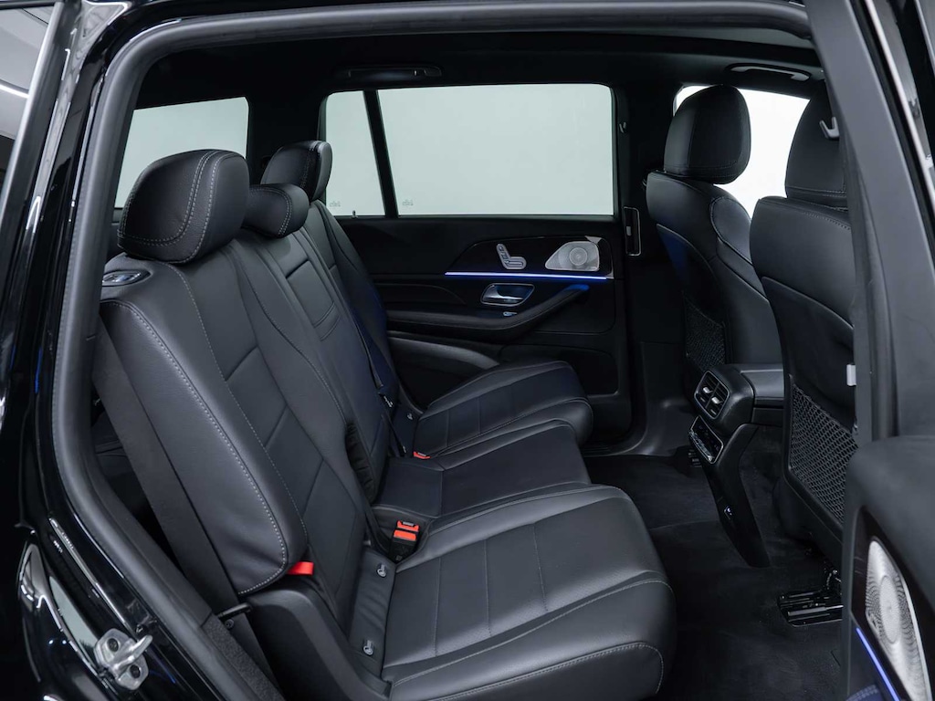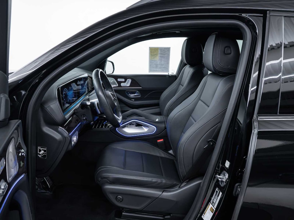 GLS 450 trim, Black exterior and Black interior. Mercedes-Benz Certified, Excellent Condition, CARFAX 1-Owner. FUEL EFFICIENT 24 MPG Hwy/19 MPG City! Heated/Cooled Seats, Third Row Seat, Moonroof, Nav System, Back-Up Camera, Rear Air, Power Liftgate, Panoramic Roof, Aluminum Wheels, Full-Time 4MATIC® All-Wheel, AMG® LINE EXTERIOR, NIGHT PACKAGE, ROOF SPOILER, ILLUMINATED RUNNING BOARDS, HEATED STEERING WHEEL, Non-Smoker vehicle. CLICK ME!