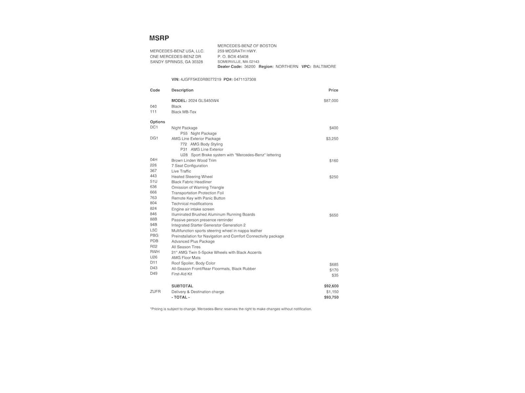 Service Work completed on this Mercedes-Benz GLS 450 included: Total Value: $4,009.51. Oil & Filter Change Using Original OEM Parts, Battery Voltage Test, Windshield Wiper Blades Replaced, Rear Glass Wiper Blade Replaced, Tires Inspected, 4 Tires Replaced, Brake Inspection, Front Brakes Pads Replaced, 4 Wheel Alignment, Emissions System Check, Professional Detailed Inside and Out, Function Test all Lights, Cooling System Inspection, Transmission Fluid Inspection, Differential Fluid Inspection, Function Test all Options & Accessories.