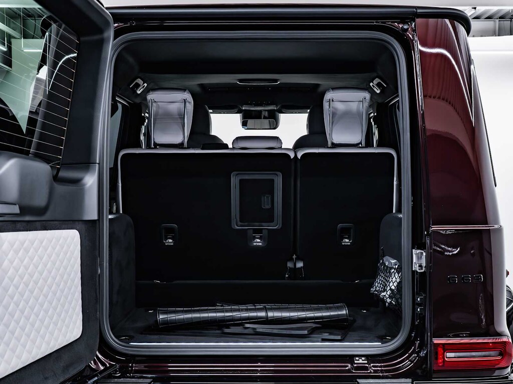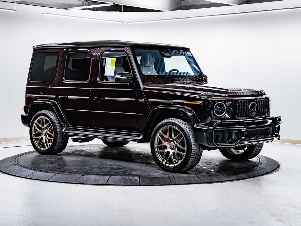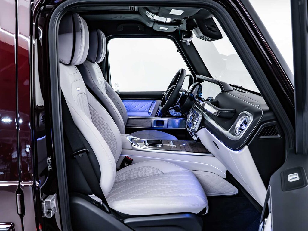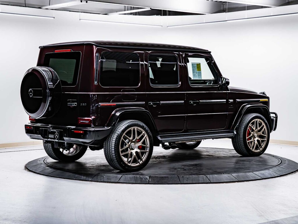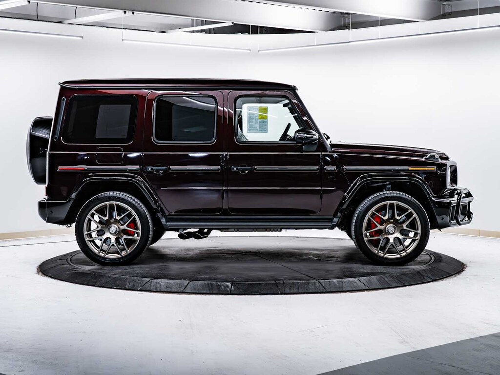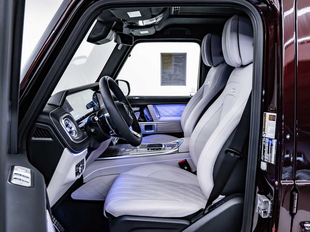 Lane Keeping Assist, Cross-Traffic Alert, Blind Spot Monitor, Electronic Stability Control, Brake Assist, 4-Wheel ABS, Tire Pressure Monitoring System, 4-Wheel Disc Brakes Mercedes-Benz AMG® G 63 with Rubellite Red Metallic exterior and Platinum White interior features a 8 Cylinder Engine with 577 HP at 6000 RPM*.