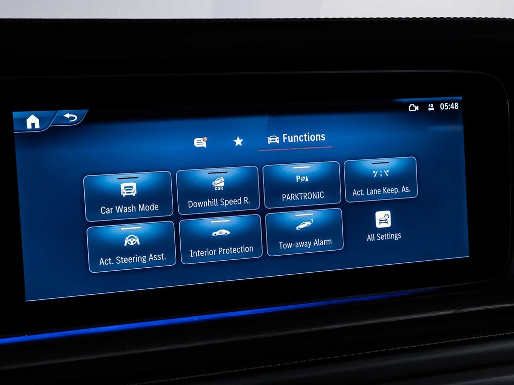 AMG® PERFORMANCE PACKAGE RACE START function, AMG® Brake Calipers in Red, AMG® ACTIVE RIDE CONTROL Suspension, Wheels: 22 AMG® MANUFAKTUR Techgold Cross-Spoke Forged, Tires: 295/40R22, Top Speed Delimiter, AMG® Performance Package (PT3), AMG® Track Pace, AMG® NIGHT PACKAGE PLUS AMG® Night Package (P56), Brush Guard in Black, Underguard in Obsidian Black, Exterior Mirrors Painted in Obsidian Black, Spare Wheel Cover in Obsidian Black, trim bumper elements, Mercedes-Benz Star in Black, MANUFAKTUR Black Running Boards, Exterior Lettering in Black, AMG®-Specific Exhaust System in Black, Wheel Arches & Bumpers in Black.