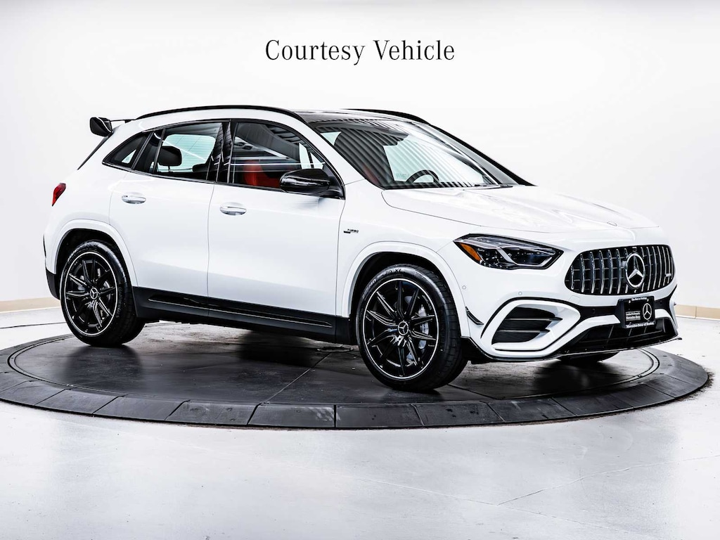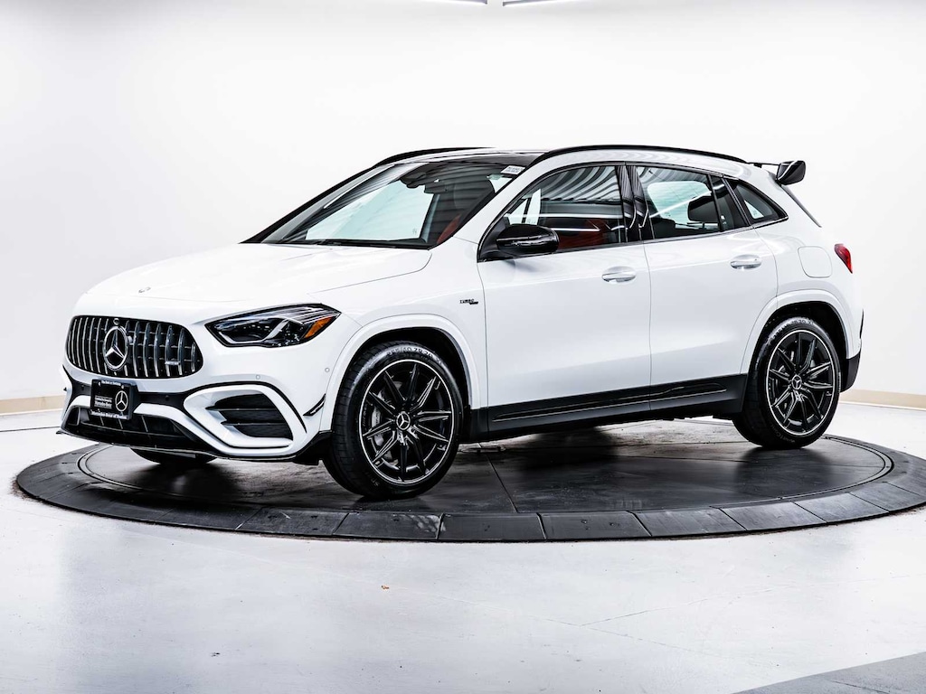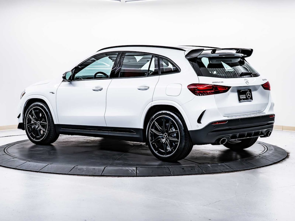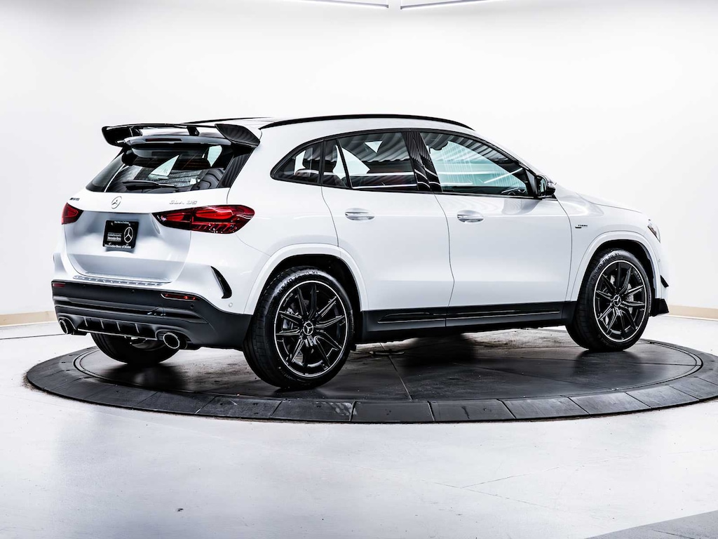 Electronic Stability Control, Brake Assist, 4-Wheel ABS, 4-Wheel Disc Brakes, Tire Pressure Monitoring System Mercedes-Benz AMG® GLA 35 with Polar White exterior and Classic Red/Black interior features a 4 Cylinder Engine with 302 HP at 5800 RPM*.