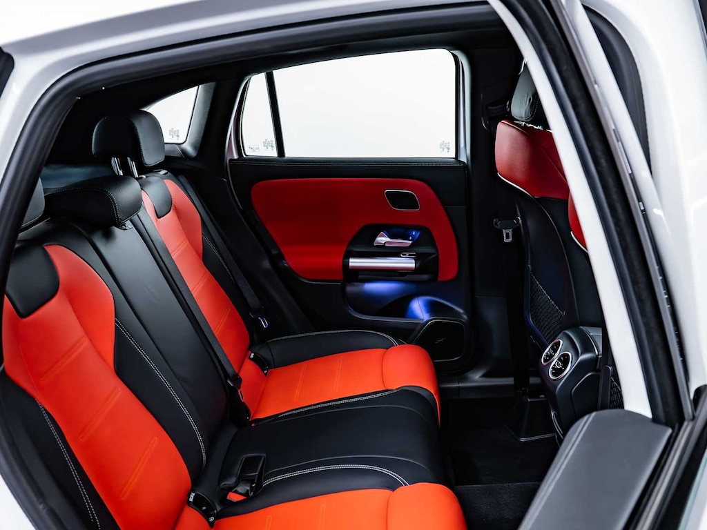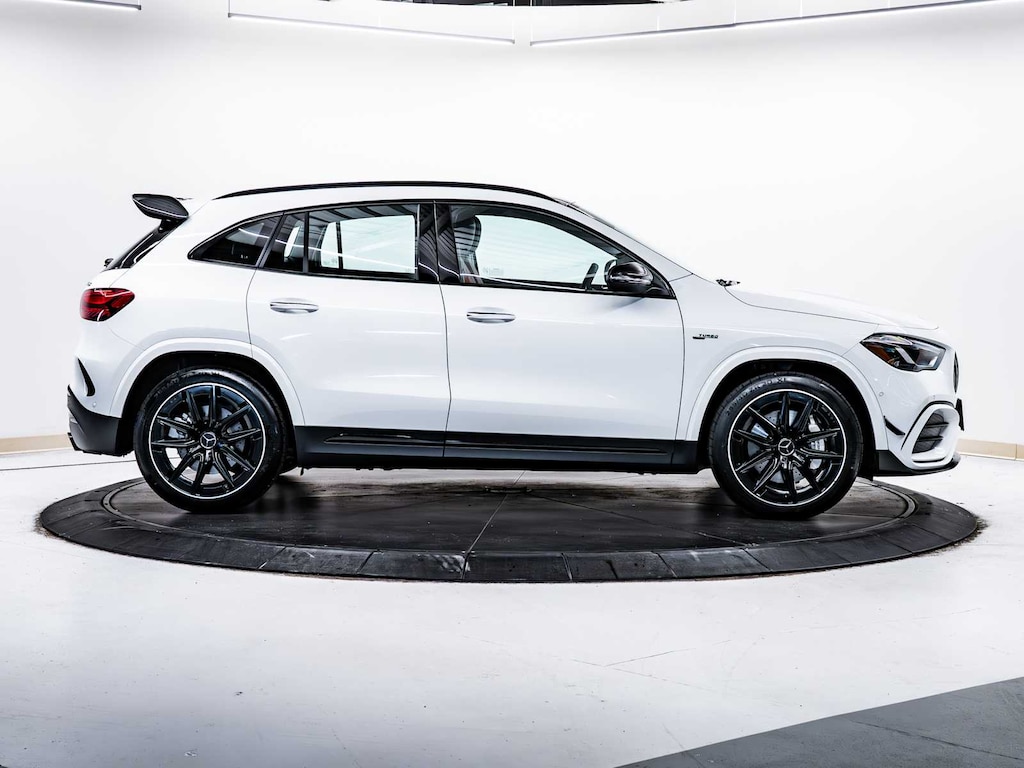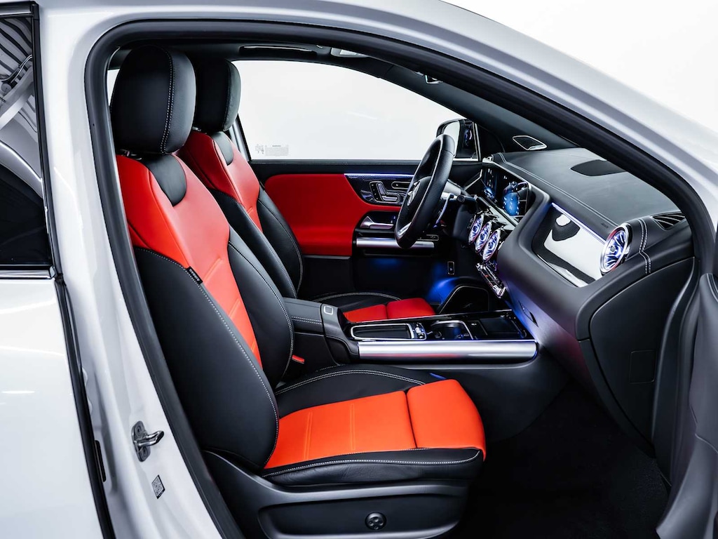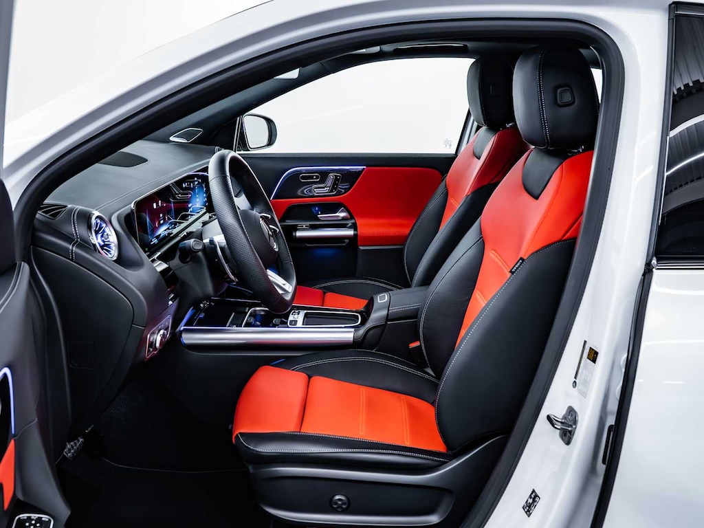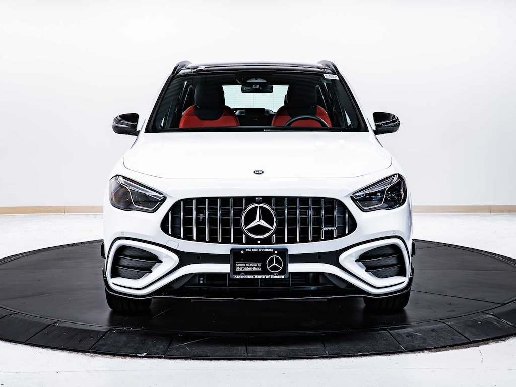 Electronic Stability Control, Brake Assist, 4-Wheel ABS, 4-Wheel Disc Brakes, Tire Pressure Monitoring System Mercedes-Benz AMG® GLA 35 with Polar White exterior and Classic Red/Black interior features a 4 Cylinder Engine with 302 HP at 5800 RPM*.