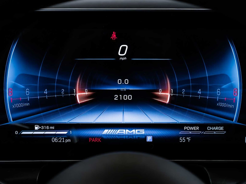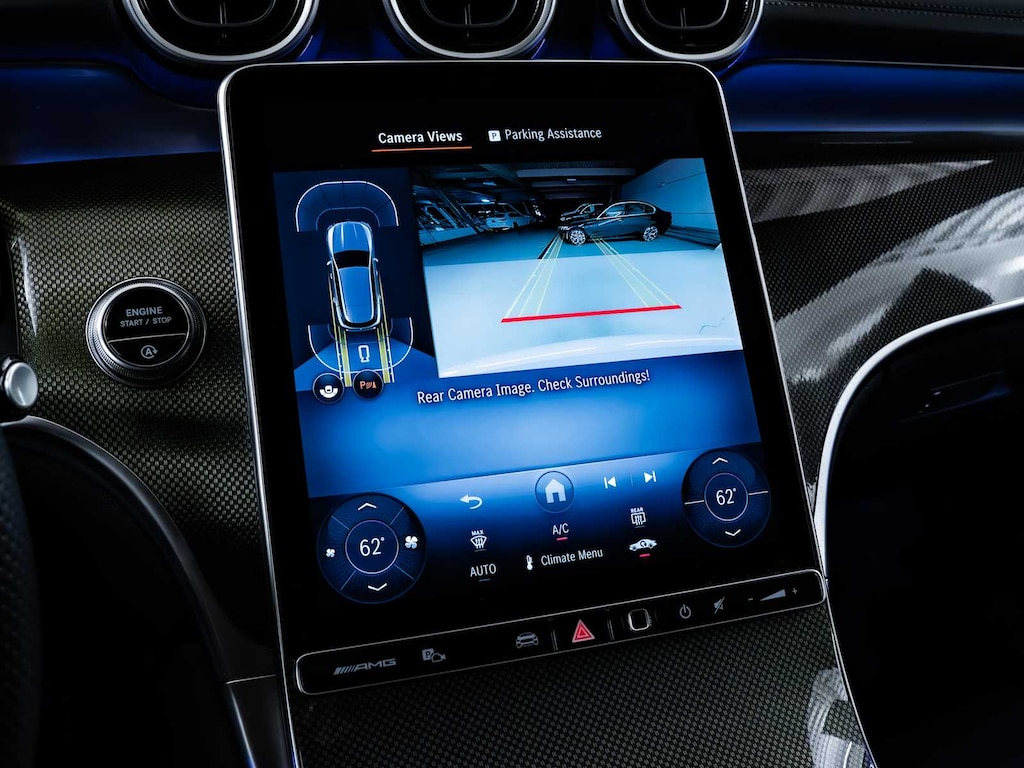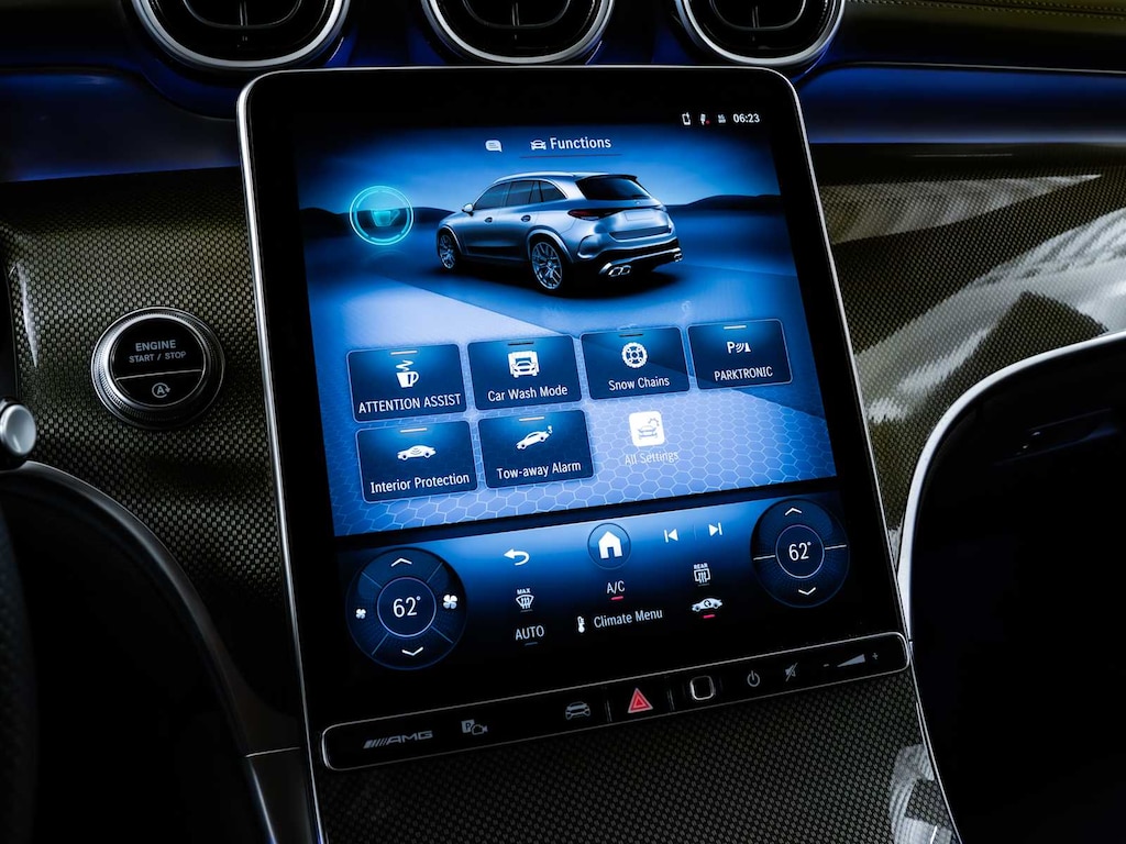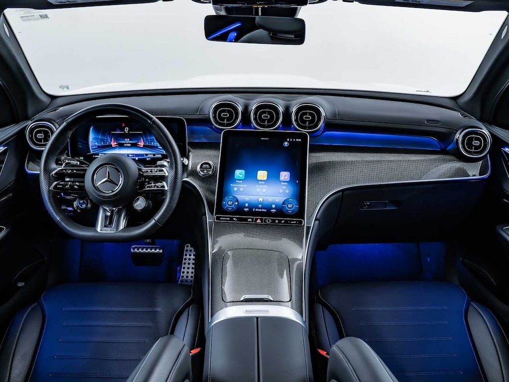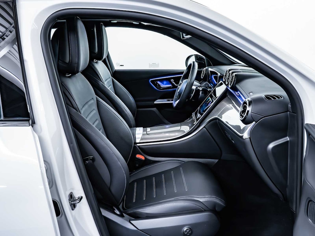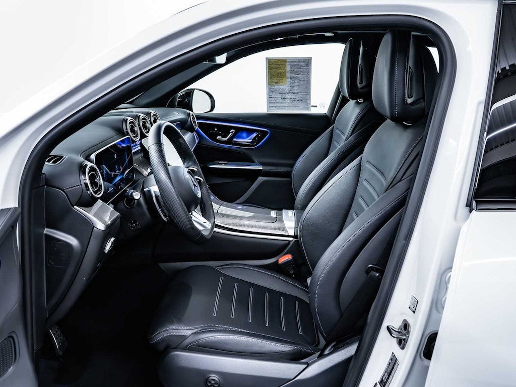 Blind Spot Monitor, Child Safety Locks, Electronic Stability Control, Brake Assist, 4-Wheel ABS, 4-Wheel Disc Brakes, Tire Pressure Monitoring System Mercedes-Benz AMG® GLC 43 with Polar White exterior and AMG® Black interior features a 4 Cylinder Engine with 416 HP at 6750 RPM*.