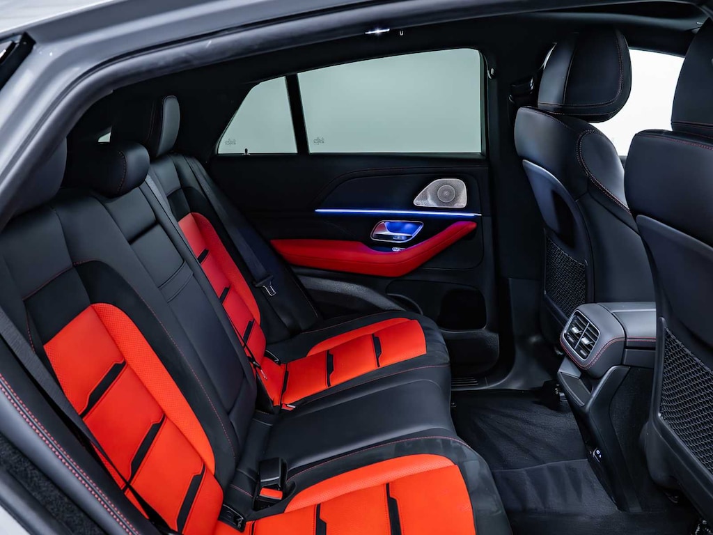 Lane Keeping Assist, Blind Spot Monitor, Child Safety Locks, Electronic Stability Control, Brake Assist, 4-Wheel ABS, 4-Wheel Disc Brakes, Tire Pressure Monitoring System Mercedes-Benz AMG® GLE 53 with MANUFAKTUR Alpine Grey exterior and Classic Red/Black interior features a Straight 6 Cylinder Engine with 429 HP at 6100 RPM*.