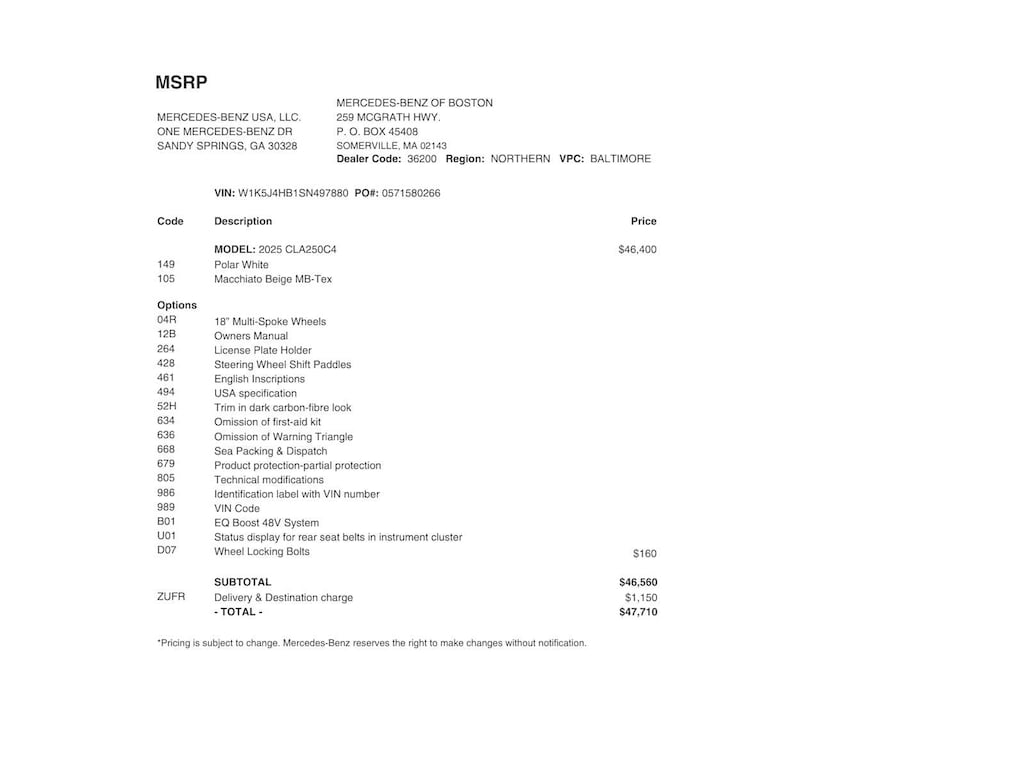 Was $43,998. This CLA 250 is priced $4,000 below Kelley Blue Book.