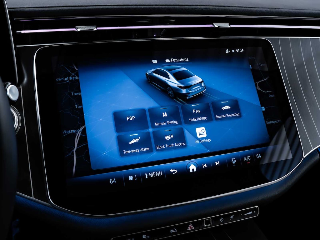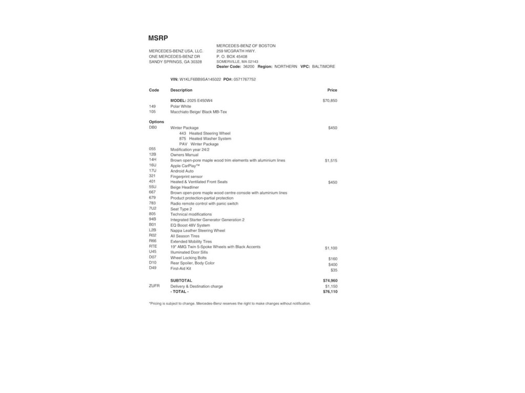 NATURAL GRAIN BROWN MAPLE WOOD TRIM W/ALUM LINES: Center Console in Natural Grain Maple Wood, aluminum lines, WHEELS: 19 AMG® 5-TWIN-SPOKE LIGHT-ALLOY W/BLACK: 19 x 8.5J front and 19 x 9.5J rear, Tires: 245/45R19 Fr & 275/40R19 Rr, VENTILATED FRONT SEATS, WINTER PACKAGE: Heated Steering Wheel, Winter Package Factory Code, Heated Windscreen Washer System, BODY COLOR REAR SPOILER.