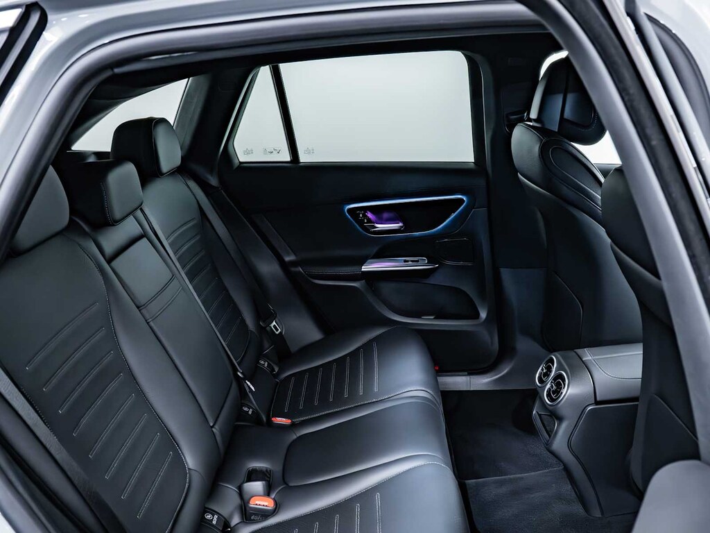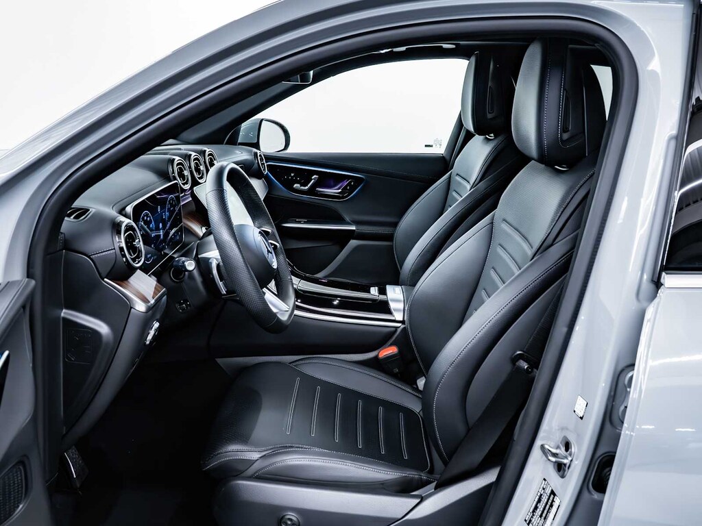 Cross-Traffic Alert, Child Safety Locks, Electronic Stability Control, Brake Assist, 4-Wheel ABS, Tire Pressure Monitoring System, 4-Wheel Disc Brakes Mercedes-Benz GLC 300 with MANUFAKTUR Alpine Grey exterior and AMG® Black interior features a 4 Cylinder Engine with 255 HP at 5800 RPM*.