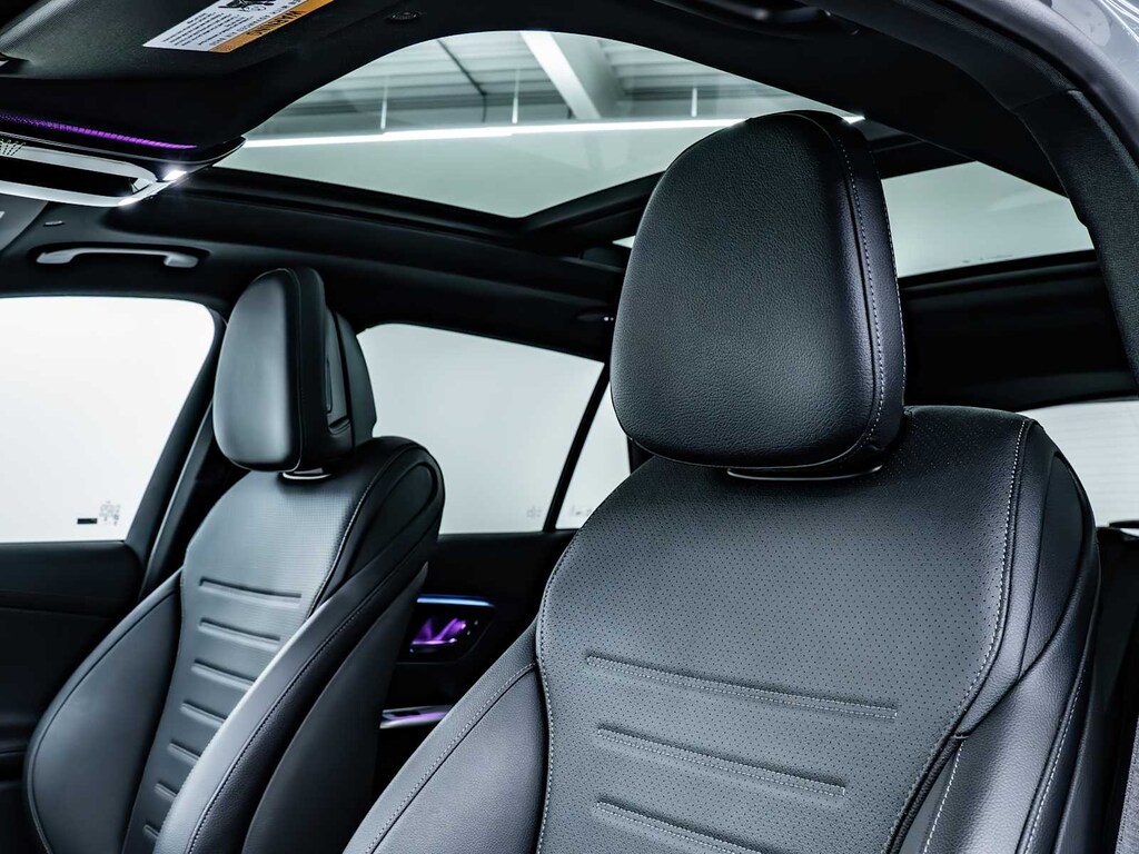AMG® LINE: AMG® Line Body Styling, AMG® Line Interior, MB-Tex Instrument Panel, beltlines in black Nappa look, AMG® Line Floor Mats, Wheel Arch Trim Painted in Body Color, Flat-Bottom Multifunction Sport Steering Wheel, Perforated Brake Discs, Mercedes-Benz lettered calipers, AMG® Line Exterior, PANORAMA SUNROOF, ANIMATED LED LOGO PROJECTOR, HEATED STEERING WHEEL.