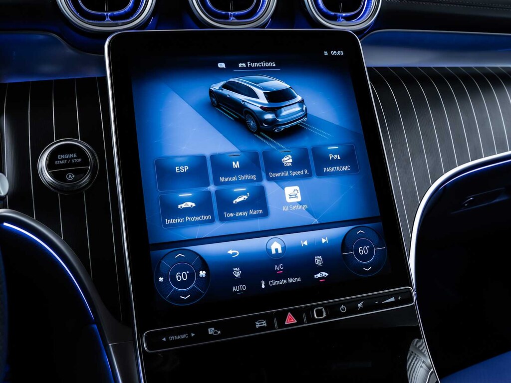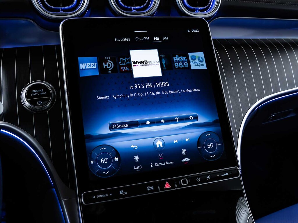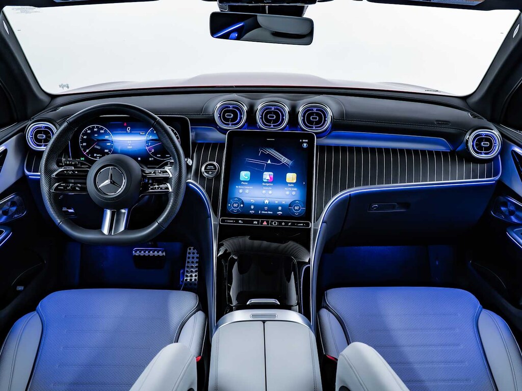 AMG® LINE: AMG® Line Body Styling, AMG® Line Interior, MB-Tex Instrument Panel, beltlines in black Nappa look, AMG® Line Floor Mats, Wheel Arch Trim Painted in Body Color, Flat-Bottom Multifunction Sport Steering Wheel, Perforated Brake Discs, Mercedes-Benz lettered calipers, AMG® Line Exterior, EXCLUSIVE TRIM: Surround View System, Enhanced Ambient Lighting, MB Navigation, Burmester® 3D Surround Sound System, 15 high-performance speakers, Sound Personalization, Illuminated Door Sills, GUARD 360, picture taking functionality, PANORAMA SUNROOF, ILLUMINATED STAR, ANIMATED LED LOGO PROJECTOR, HEATED STEERING WHEEL, NIGHT PACKAGE: High-Gloss Black Elements, front wing, grille lamellas, rear diffuser insert, exterior mirrors, beltline and window trim, Black Roof Rails, NATURAL GRAIN BLACK WOOD W/ALUMINUM LINES TRIM.