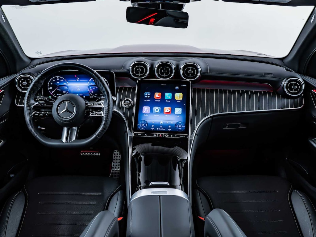 Child Safety Locks, Electronic Stability Control, Brake Assist, 4-Wheel ABS, Tire Pressure Monitoring System, 4-Wheel Disc Brakes Mercedes-Benz GLC 300 with MANUFAKTUR Patagonia Red Metallic exterior and Black interior features a 4 Cylinder Engine with 255 HP at 5800 RPM*.