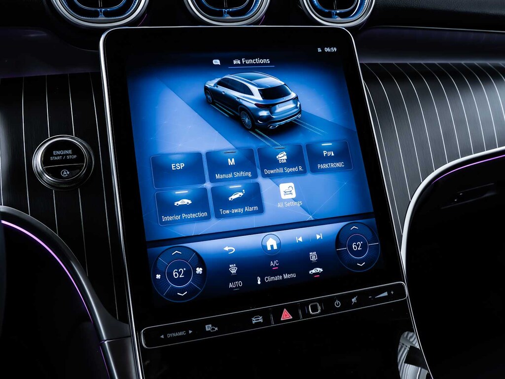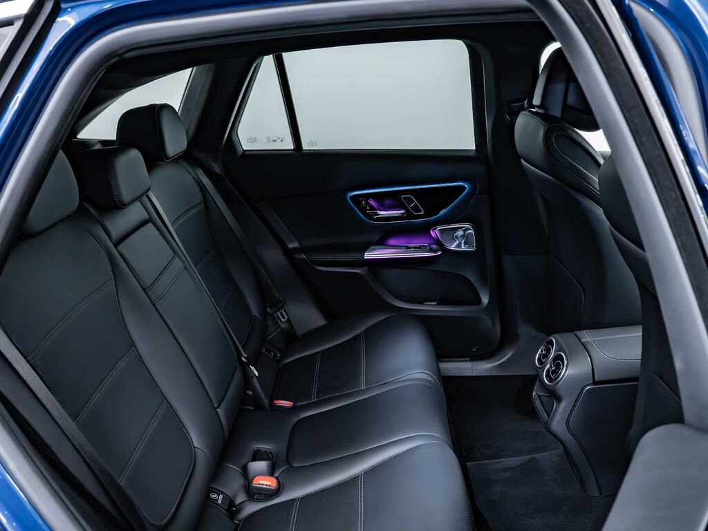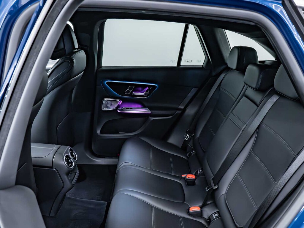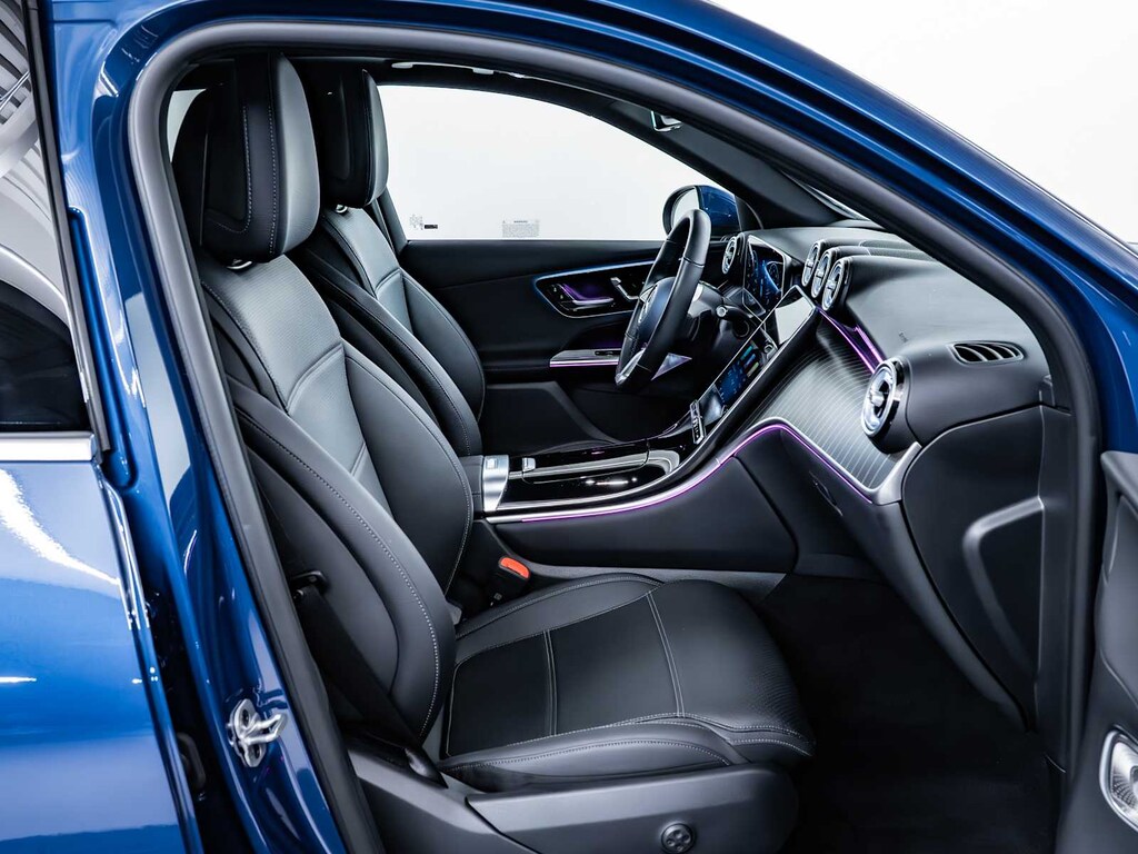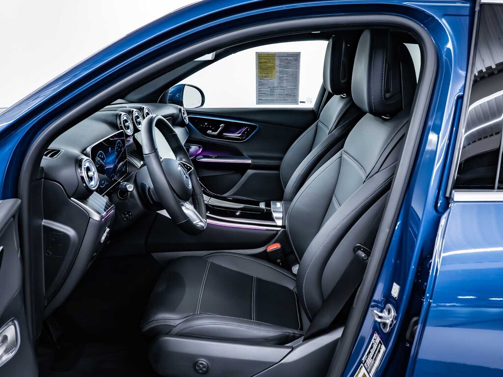 Child Safety Locks, Electronic Stability Control, Brake Assist, 4-Wheel ABS, Tire Pressure Monitoring System, 4-Wheel Disc Brakes Mercedes-Benz GLC 300 with Starling Blue Metallic exterior and Black interior features a 4 Cylinder Engine with 255 HP at 5800 RPM*.