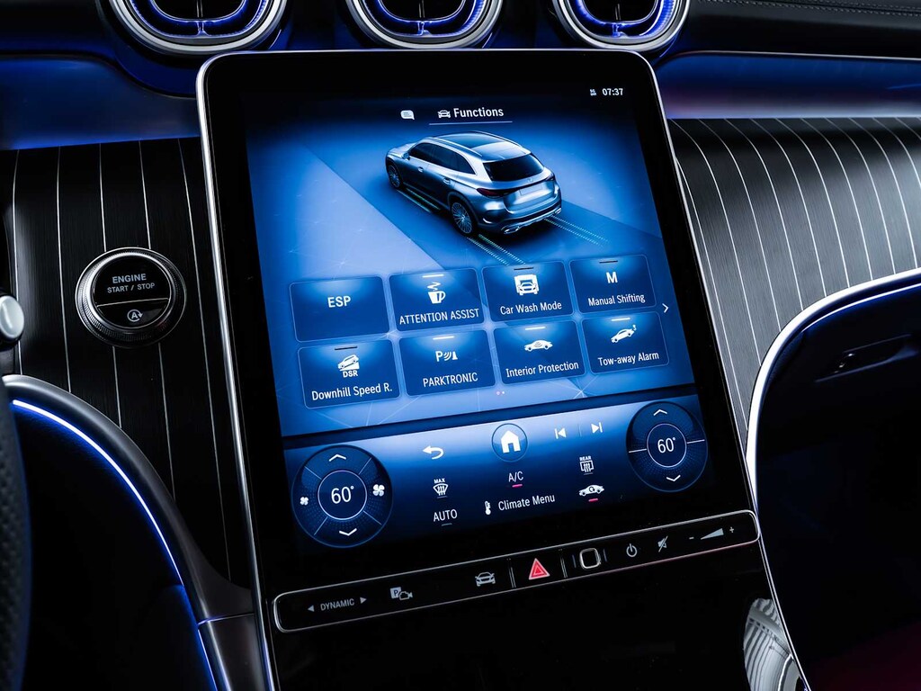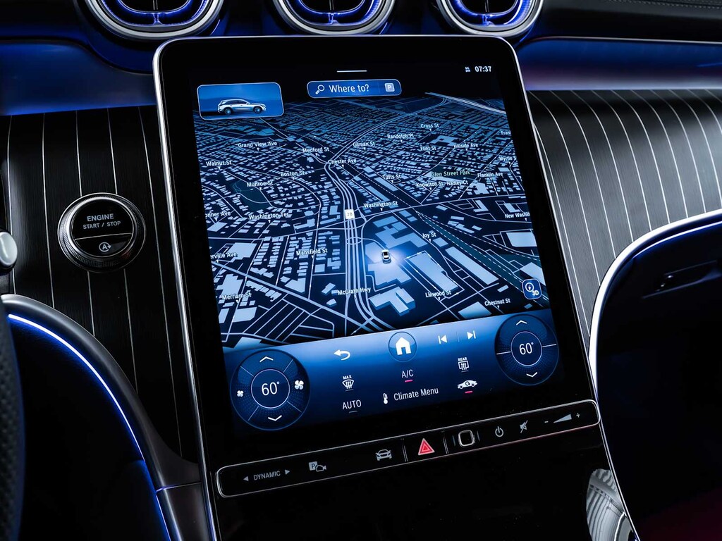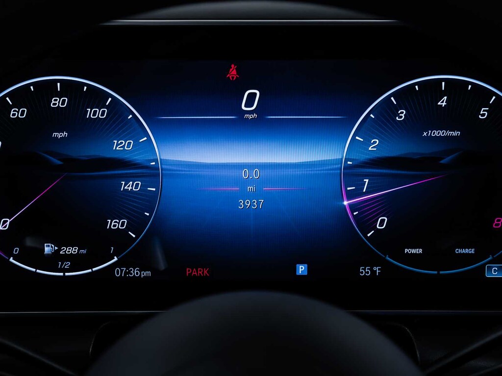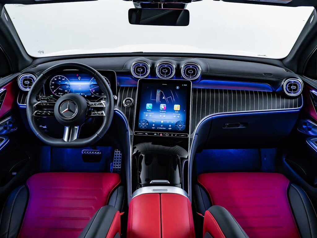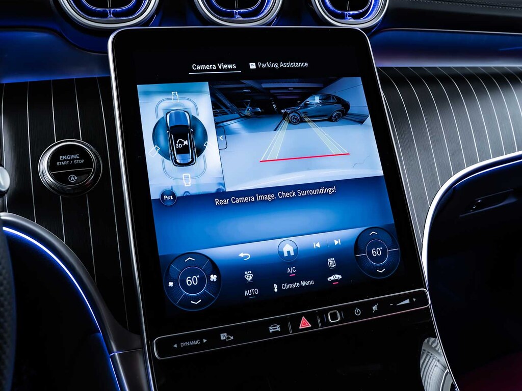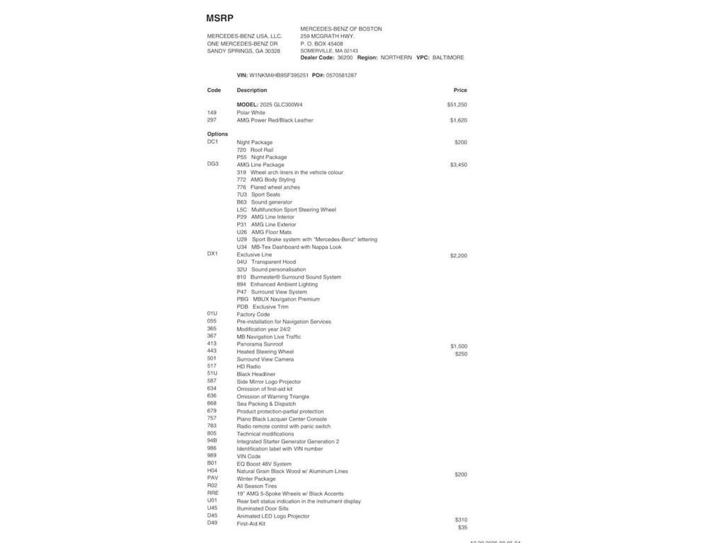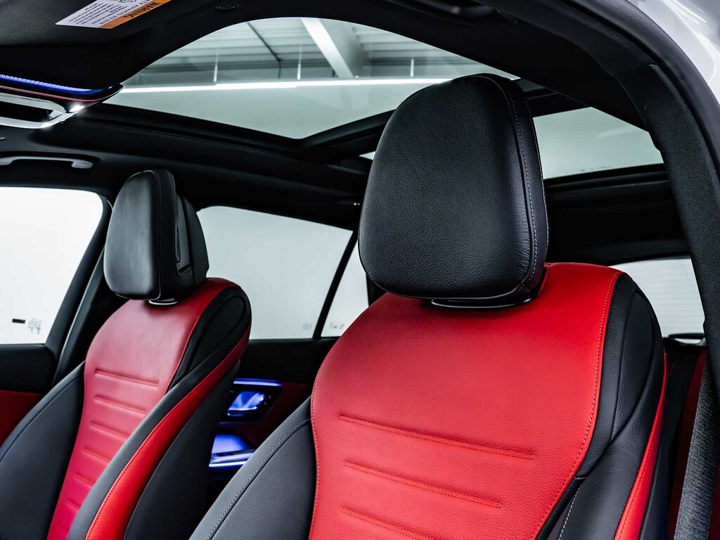 AMG® LINE: AMG® Line Body Styling, AMG® Line Interior, MB-Tex Instrument Panel, beltlines in black Nappa look, AMG® Line Floor Mats, Wheel Arch Trim Painted in Body Color, Flat-Bottom Multifunction Sport Steering Wheel, Perforated Brake Discs, Mercedes-Benz lettered calipers, AMG® Line Exterior, EXCLUSIVE TRIM: Surround View System, Enhanced Ambient Lighting, MB Navigation, Burmester® 3D Surround Sound System, 15 high-performance speakers, Sound Personalization, Illuminated Door Sills, GUARD 360, picture taking functionality, PANORAMA SUNROOF, ANIMATED LED LOGO PROJECTOR, HEATED STEERING WHEEL, NIGHT PACKAGE: High-Gloss Black Elements, front wing, grille lamellas, rear diffuser insert, exterior mirrors, beltline and window trim, Black Roof Rails, NATURAL GRAIN BLACK WOOD W/ALUMINUM LINES TRIM.