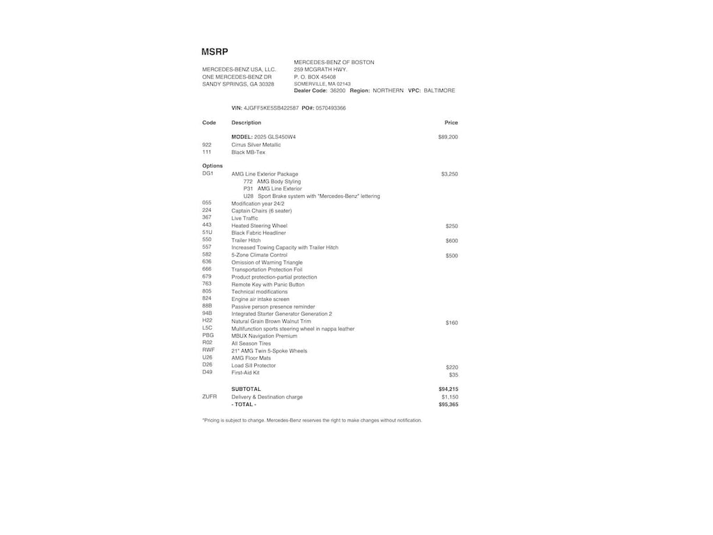AMG® LINE EXTERIOR: AMG® Rear Apron, black diffuser-look insert and chrome trim strip, AMG® Side Skirts in Body Color, Large Front Brake System, larger brake discs at the front axle, AMG® Brushed Stainless Steel Sports Pedals, black rubber studs, AMG® Floor Mats, AMG® Sport 3-Twin-Spoke Steering Wheel, flattened bottom, embossed nappa leather, silver chrome shift paddles, gloss black and silver spokes and touch control panels, Front and Rear Flared Wheel Arches in Body Color, AMG® Bodystyling, AMG® front apron w/air outlets in the wheel arch linings, TRAILER HITCH: increased towing capacity, 5-ZONE CLIMATE CONTROL: additional air vents in the headliner, HEATED STEERING WHEEL, LOAD SILL GUARD.
