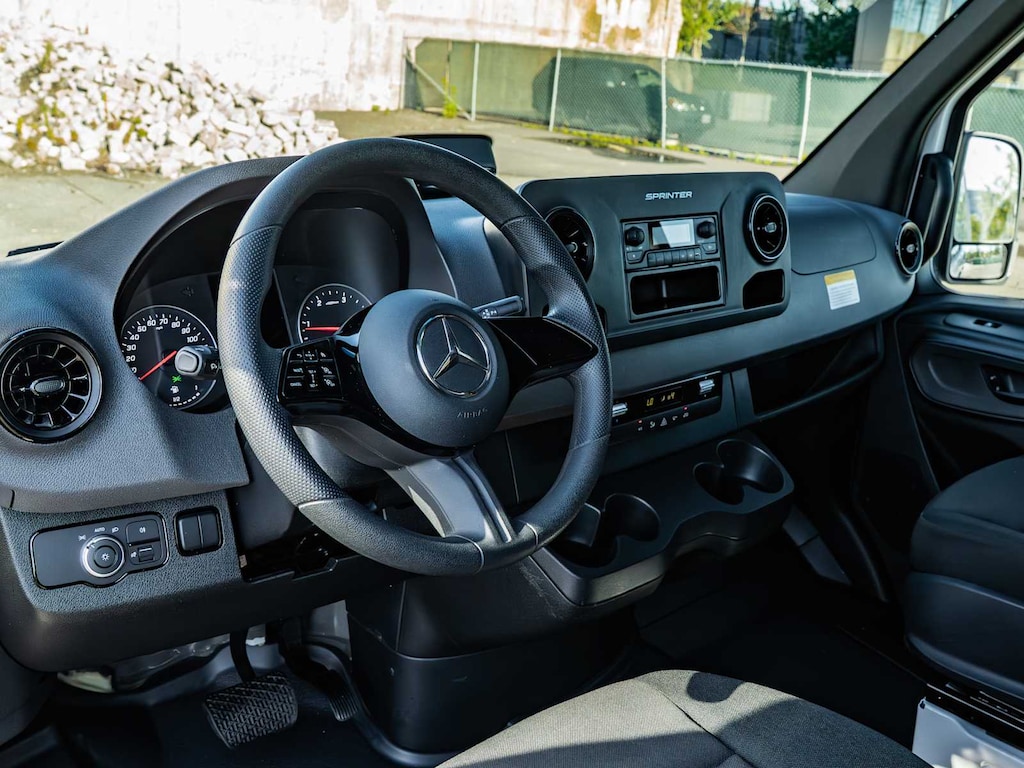 Blind Spot Monitor, Brake Assist, 4-Wheel ABS, 4-Wheel Disc Brakes, Tire Pressure Monitoring System Mercedes-Benz Sprinter Cargo Van with Arctic White exterior and Black interior features a 4 Cylinder Engine with 168 HP at 3800 RPM*.