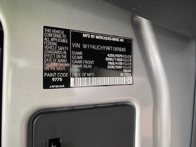 PREMIUM MBUX PACKAGE: Front-to-Rear Outlet in Instrument Panel, Smartphone Integration Package, Leather Steering Wheel, Hinged Lid for Storage Compartment, Wet Wiper System, Rear View Camera w/Head Unit Display, Heated Steering Wheel, Pre-Installation Navigation, Rain Sensor, Radio: MBUX Multimedia System w/10.25 Touchscreen, Acoustic Package, Digital Owners Manual, NAVIGATION CHARGING PACKAGE: 110KW DC Charging, Navigation, Pre-Installation Map Data Updates, Intelligent Navigation, REAR DOOR CONVENIENCE PACKAGE: Left Rear Door Assist Handle, 90 Degree Fixation Point on Rear Doors, Right Rear Door Assist Handles, Opening to Side Wall Rear Doors, BLIND SPOT ASSIST, SIDE WALL PANELING FULL HARDBOARD, WOOD FLOOR W/6 D-RINGS, DRIVER CONVENIENCE PACKAGE: Hinged Lid for Left & Right Storage Compartments, 2 Additional Master Keys, Electrically Folding Exterior Mirrors, Driver Seat Base 12V Power Outlet, ATTENTION ASSIST®, Hinged Lid for Storage Compartment, TWIN FRONT PASSENGER SEAT, CAB REAR WALL LINER, CARGO PARTITION W/1 WINDOW, LED LIGHT STRIP IN LOAD COMPARTMENT, SIRIUSXM SATELLITE RADIO, ELECTRICALLY HEATED WINDSHIELD.