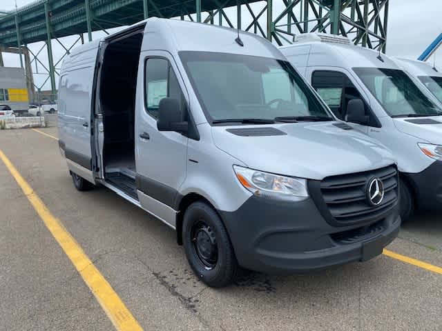 Heated Driver Seat, Keyless Start, Heated Seats. Third Passenger Door, Keyless Entry, Steering Wheel Controls, Heated Mirrors, Electronic Stability Control. Mercedes-Benz eSprinter Cargo Van with Iridium Silver exterior and Black interior features a Electric Motor.