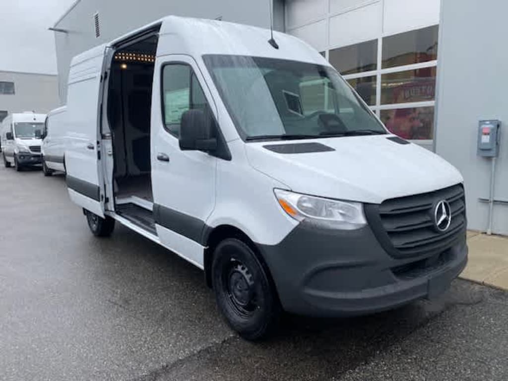 Blind Spot Monitor, Brake Assist, 4-Wheel ABS, 4-Wheel Disc Brakes, Tire Pressure Monitoring System Mercedes-Benz Sprinter Cargo Van with Arctic White exterior and Black interior features a 4 Cylinder Engine with 168 HP at 3800 RPM*.
