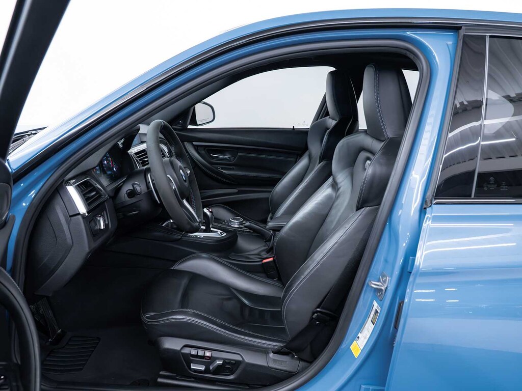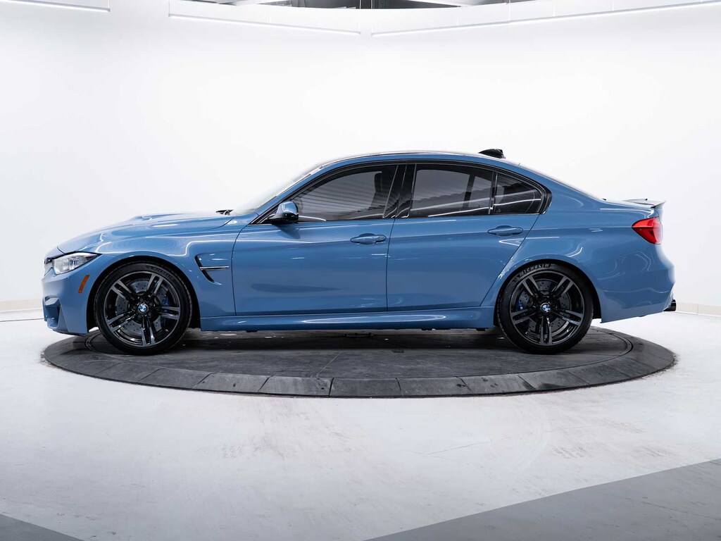Electronic Stability Control, Brake Assist, 4-Wheel ABS, Tire Pressure Monitoring System, 4-Wheel Disc Brakes BMW M3 Sedan with Yas Marina Blue Metallic exterior and Black interior features a Straight 6 Cylinder Engine with 425 HP at 5500 RPM*.