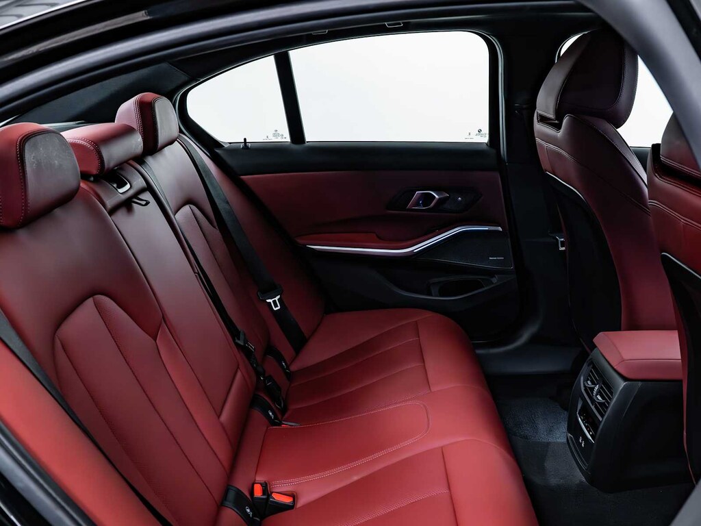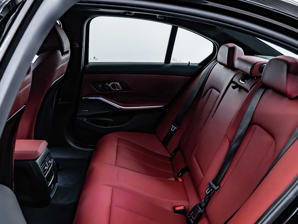 Cross-Traffic Alert, Blind Spot Monitor, Lane Keeping Assist, Electronic Stability Control, Brake Assist, 4-Wheel ABS, 4-Wheel Disc Brakes, Tire Pressure Monitoring System BMW M340i xDrive with Black Sapphire Metallic exterior and Tacora Red interior features a Straight 6 Cylinder Engine with 382 HP at 5800 RPM*.