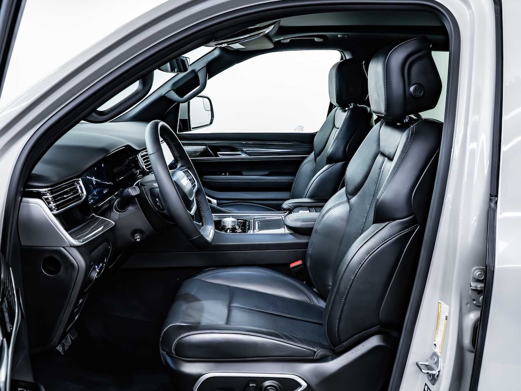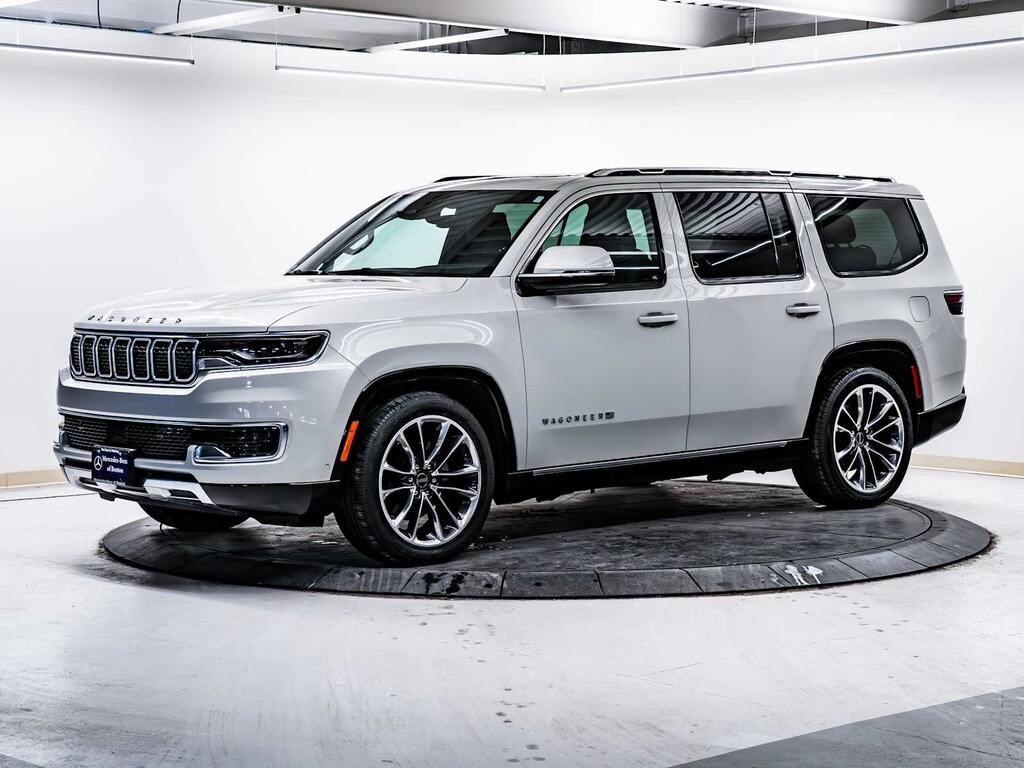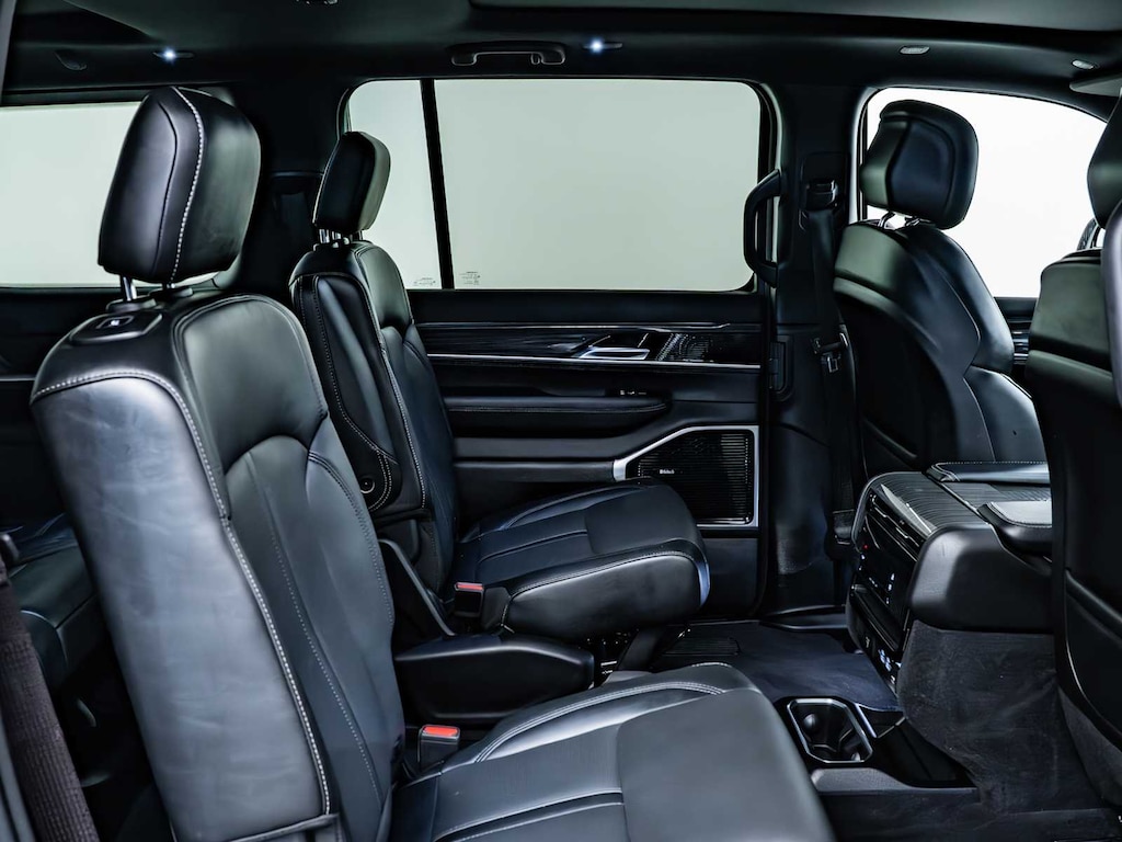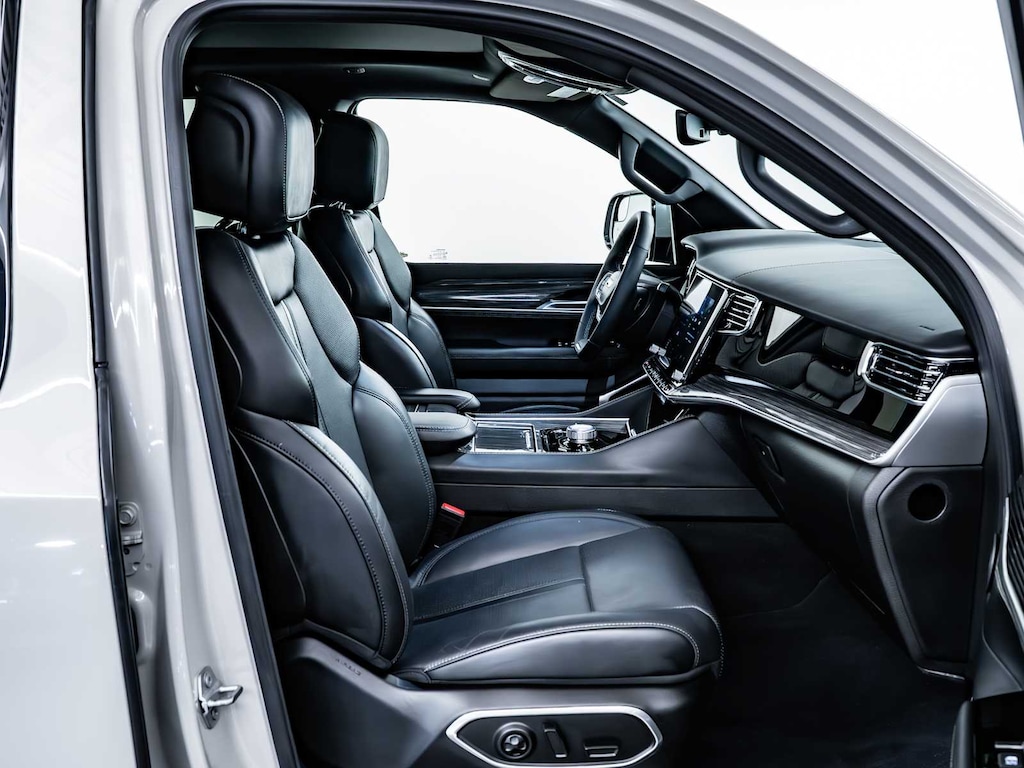 PREMIUM GROUP I 19 Speaker McIntosh Audio System, Luxury Front & Rear Floor Mats, Reversible Carpet/Vinyl Cargo Mat, Cargo Cover, Power Deployable Running Boards, 3 Panel Sunroof, Adjustable Roof Rail Crossbars, FLEXIBLE SEATING GROUP Power Tip/Slide Recline 2nd Row Buckets, GVWR: 7,500 lbs, 7 Passenger Seating, Floor Console w/Cupholder, TRANSMISSION: 8-SPEED AUTOMATIC (8HP75) (STD), ENGINE: 5.7L V8 W/ETORQUE (STD). Safety equipment includes Blind Spot Monitor, Cross-Traffic Alert, Lane Keeping Assist, Child Safety Locks, Electronic Stability Control, Adjustable Pedals, Brake Assist, 4-Wheel ABS, 4-Wheel Disc Brakes, Tire Pressure Monitoring System. Jeep Series III with Luxury White Pearlcoat exterior and Global Black interior features a 8 Cylinder Engine with 392 HP at 5600 RPM*.
