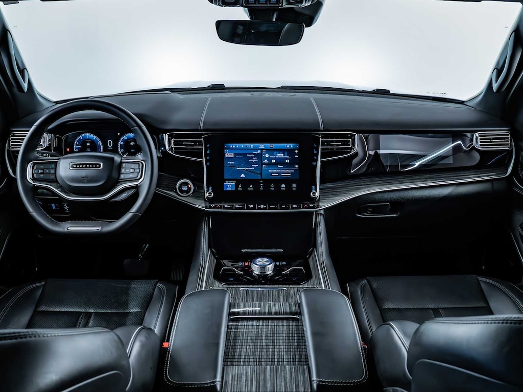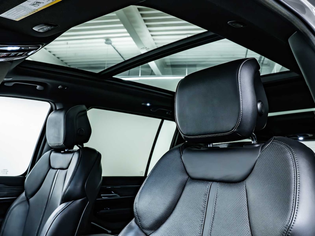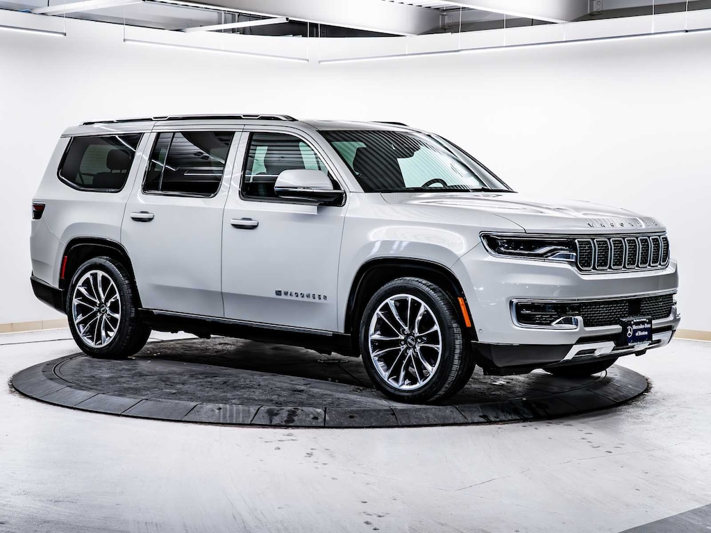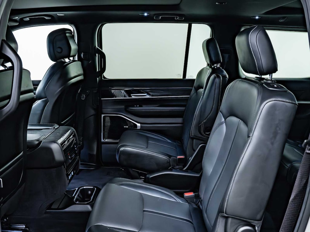 PREMIUM GROUP I 19 Speaker McIntosh Audio System, Luxury Front & Rear Floor Mats, Reversible Carpet/Vinyl Cargo Mat, Cargo Cover, Power Deployable Running Boards, 3 Panel Sunroof, Adjustable Roof Rail Crossbars, FLEXIBLE SEATING GROUP Power Tip/Slide Recline 2nd Row Buckets, GVWR: 7,500 lbs, 7 Passenger Seating, Floor Console w/Cupholder, TRANSMISSION: 8-SPEED AUTOMATIC (8HP75) (STD), ENGINE: 5.7L V8 W/ETORQUE (STD). Safety equipment includes Blind Spot Monitor, Cross-Traffic Alert, Lane Keeping Assist, Child Safety Locks, Electronic Stability Control, Adjustable Pedals, Brake Assist, 4-Wheel ABS, 4-Wheel Disc Brakes, Tire Pressure Monitoring System. Jeep Series III with Luxury White Pearlcoat exterior and Global Black interior features a 8 Cylinder Engine with 392 HP at 5600 RPM*.