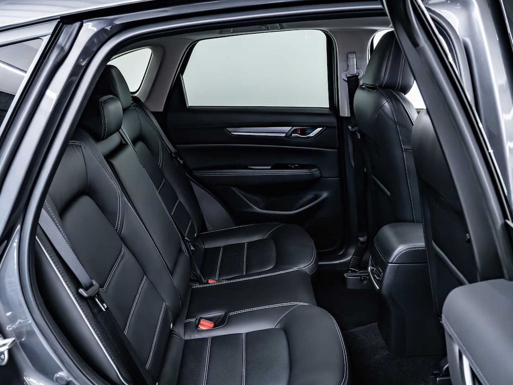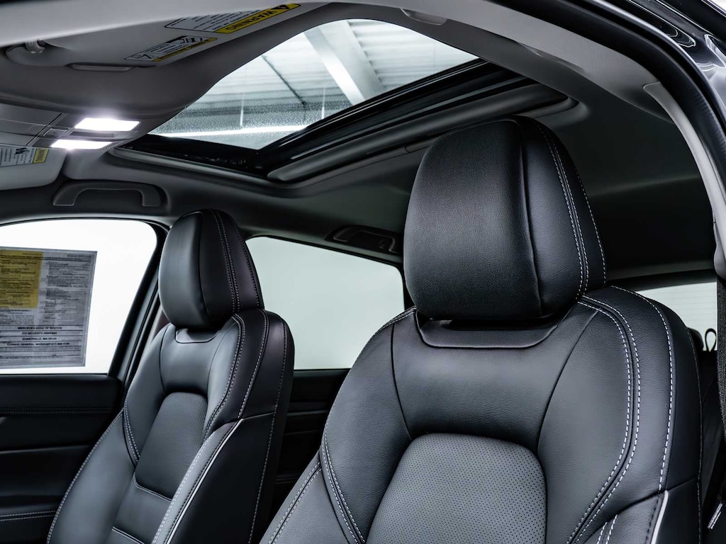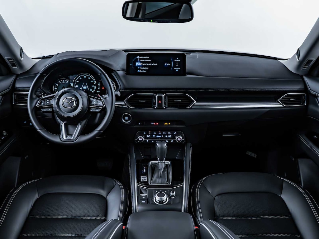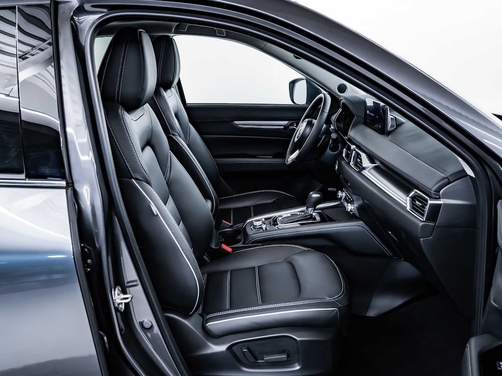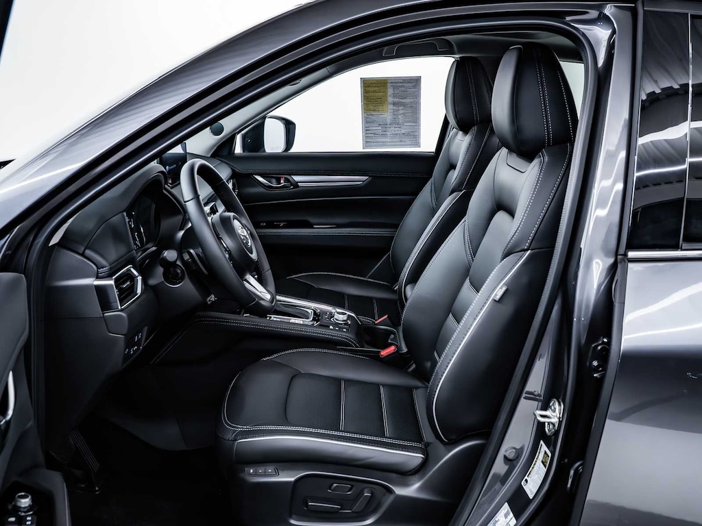 Blind Spot Monitor, Cross-Traffic Alert, Lane Keeping Assist, Child Safety Locks, Electronic Stability Control, Brake Assist, 4-Wheel ABS, Tire Pressure Monitoring System, 4-Wheel Disc Brakes Mazda CX-5 2.5 S Premium Plus Package with Machine Gray Metallic exterior and Black interior features a 4 Cylinder Engine with 187 HP at 6000 RPM*.