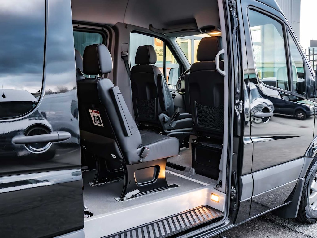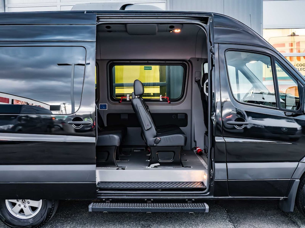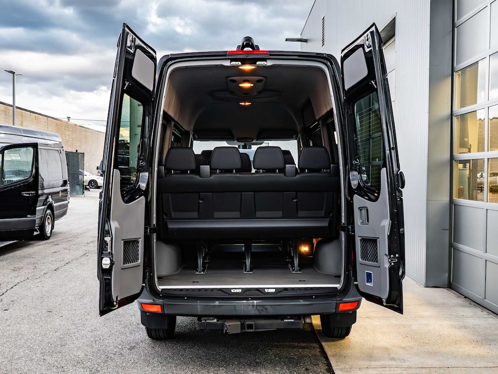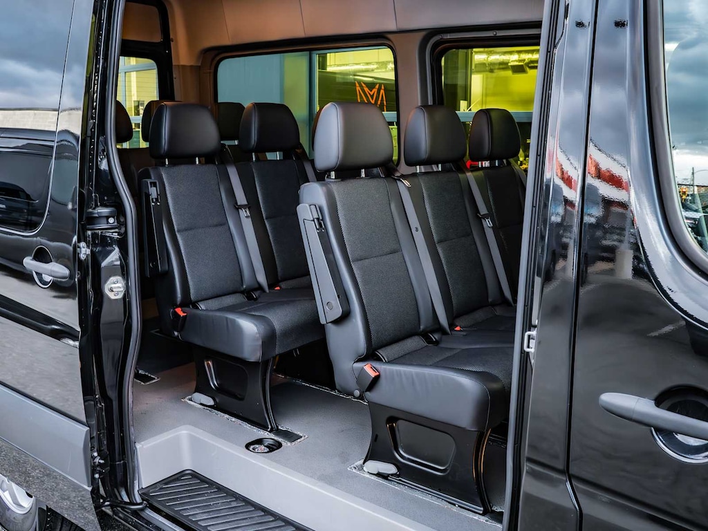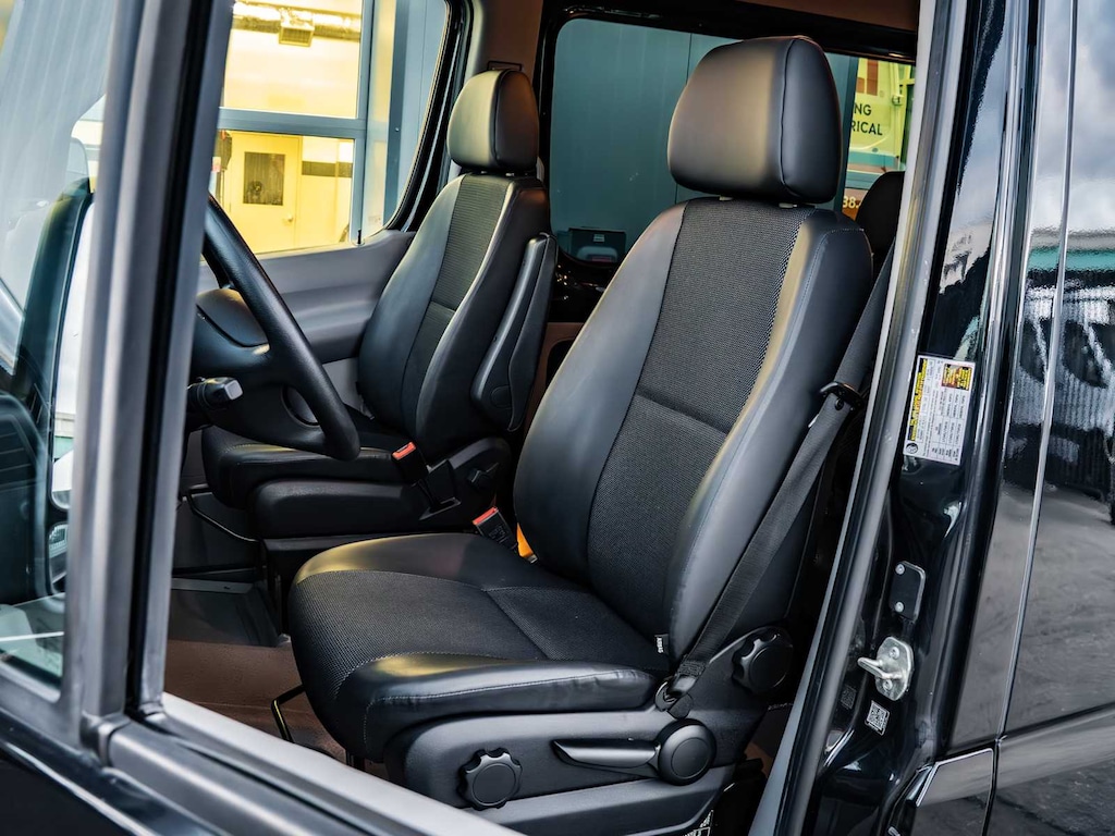 Brake Assist, 4-Wheel ABS, Tire Pressure Monitoring System, 4-Wheel Disc Brakes Mercedes-Benz Sprinter Passenger Van with Obsidian Black Metallic exterior and Black interior features a V6 Cylinder Engine with 188 HP at 3800 RPM*.