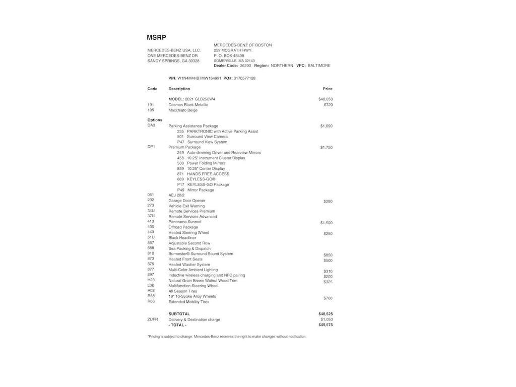 PREMIUM PACKAGE Hands-Free Access, Power Folding Exterior Mirrors, Auto-Dimming Rearview & Driver-Side Mirrors, 10.25 Digital Instrument Cluster, Keyless GO®, 10.25 Media Display w/Touchscreen, PANORAMA ROOF, PARKING ASSISTANCE PACKAGE PARKTRONIC w/Advanced Parking Assist, Surround View System, Burmester® SURROUND SOUND SYSTEM, WHEELS: 19 10-SPOKE W/MATTE BLACK ACCENTS (R58) Tires: 235/50R19, HEATED FRONT SEATS, NATURAL GRAIN BROWN WALNUT WOOD TRIM, GARAGE DOOR OPENER, HEATED STEERING WHEEL Round Multifunction Steering Wheel in Leather, touch control buttons and shift paddles.