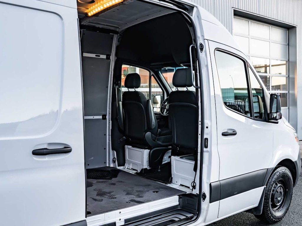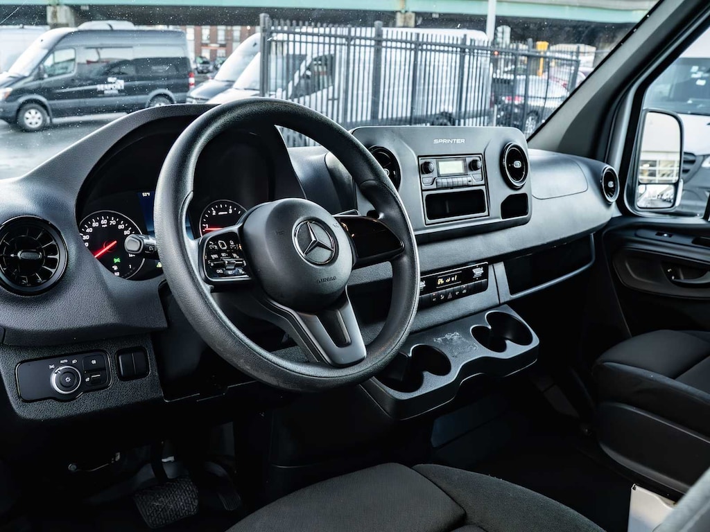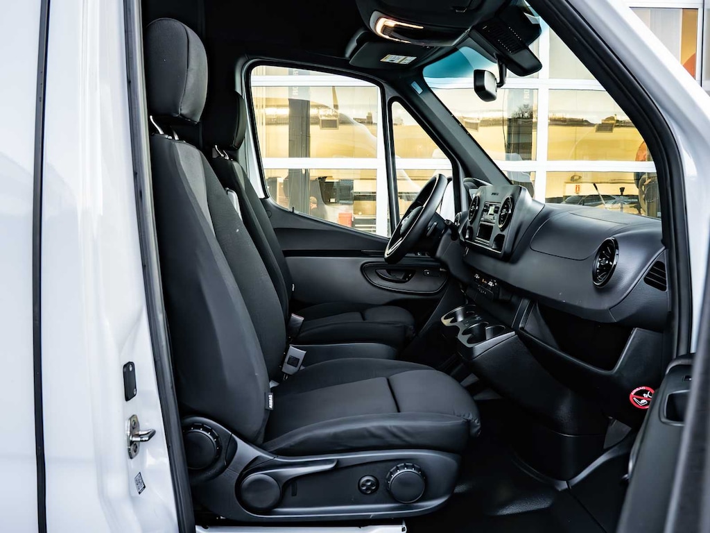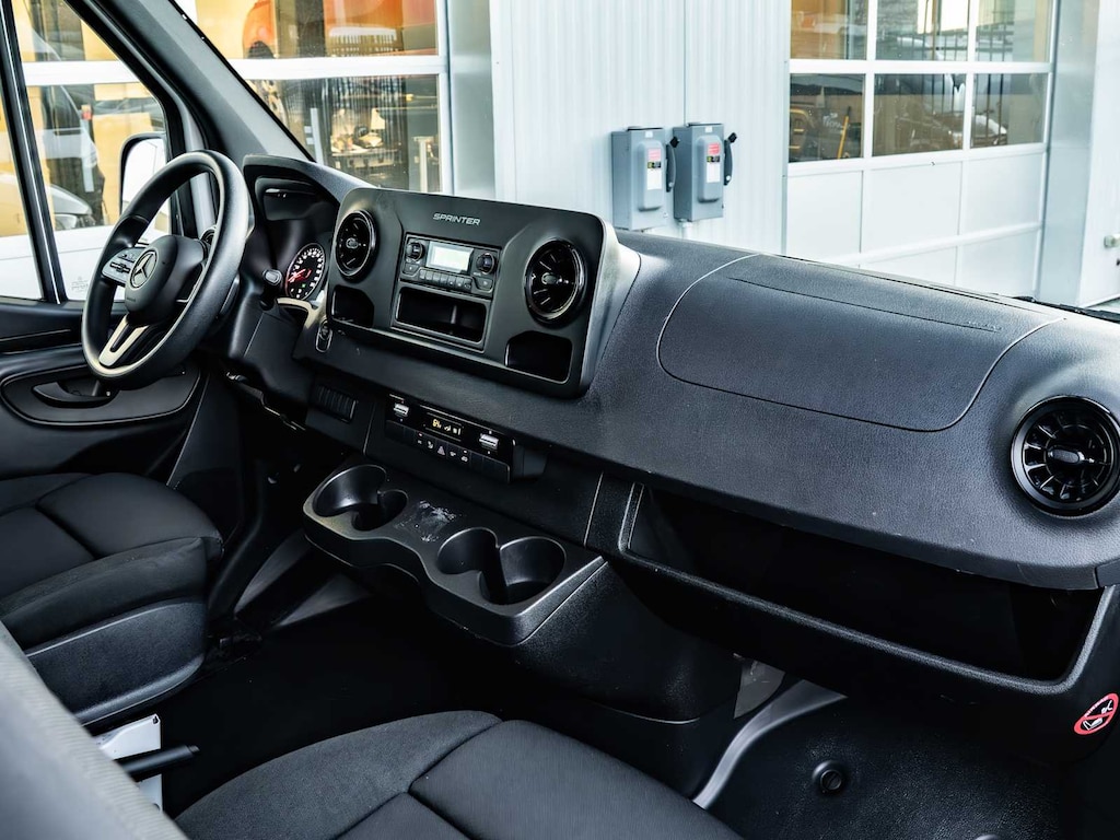 Blind Spot Monitor, Brake Assist, 4-Wheel ABS, Tire Pressure Monitoring System, 4-Wheel Disc Brakes Mercedes-Benz Sprinter Cargo Van with Arctic White exterior and Black interior features a 4 Cylinder Engine with 170 HP at 3800 RPM*.