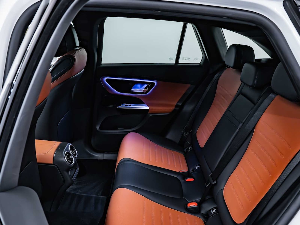 Child Safety Locks, Electronic Stability Control, Brake Assist, 4-Wheel ABS, Tire Pressure Monitoring System, 4-Wheel Disc Brakes Mercedes-Benz GLC 300 with Polar White exterior and Sienna Brown/Black interior features a 4 Cylinder Engine with 255 HP at 5800 RPM*.
