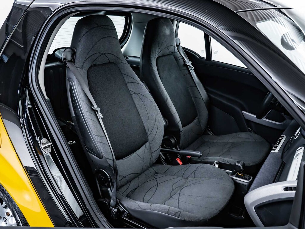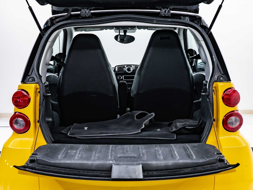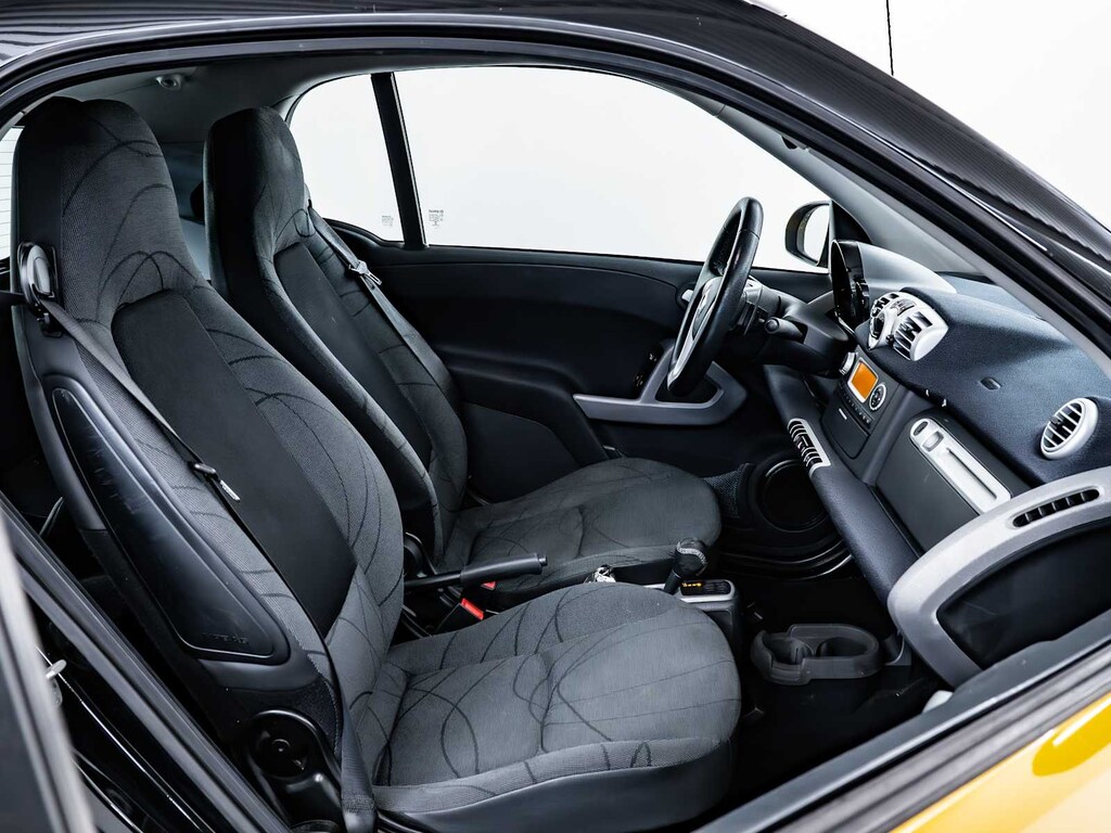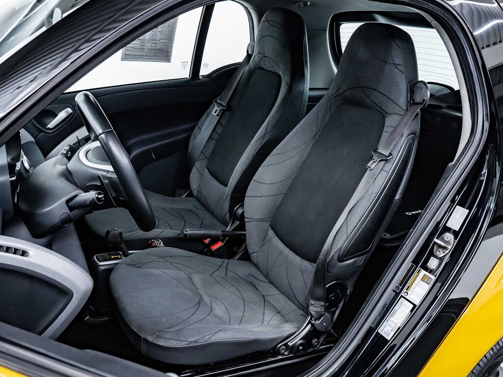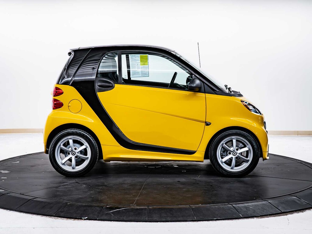 Brake Assist, 4-Wheel ABS, Front Disc/Rear Drum Brakes, Tire Pressure Monitoring System smart Passion with Clear Flame Yellow exterior and Design Black interior features a 3 Cylinder Engine with 70 HP at 5800 RPM*.